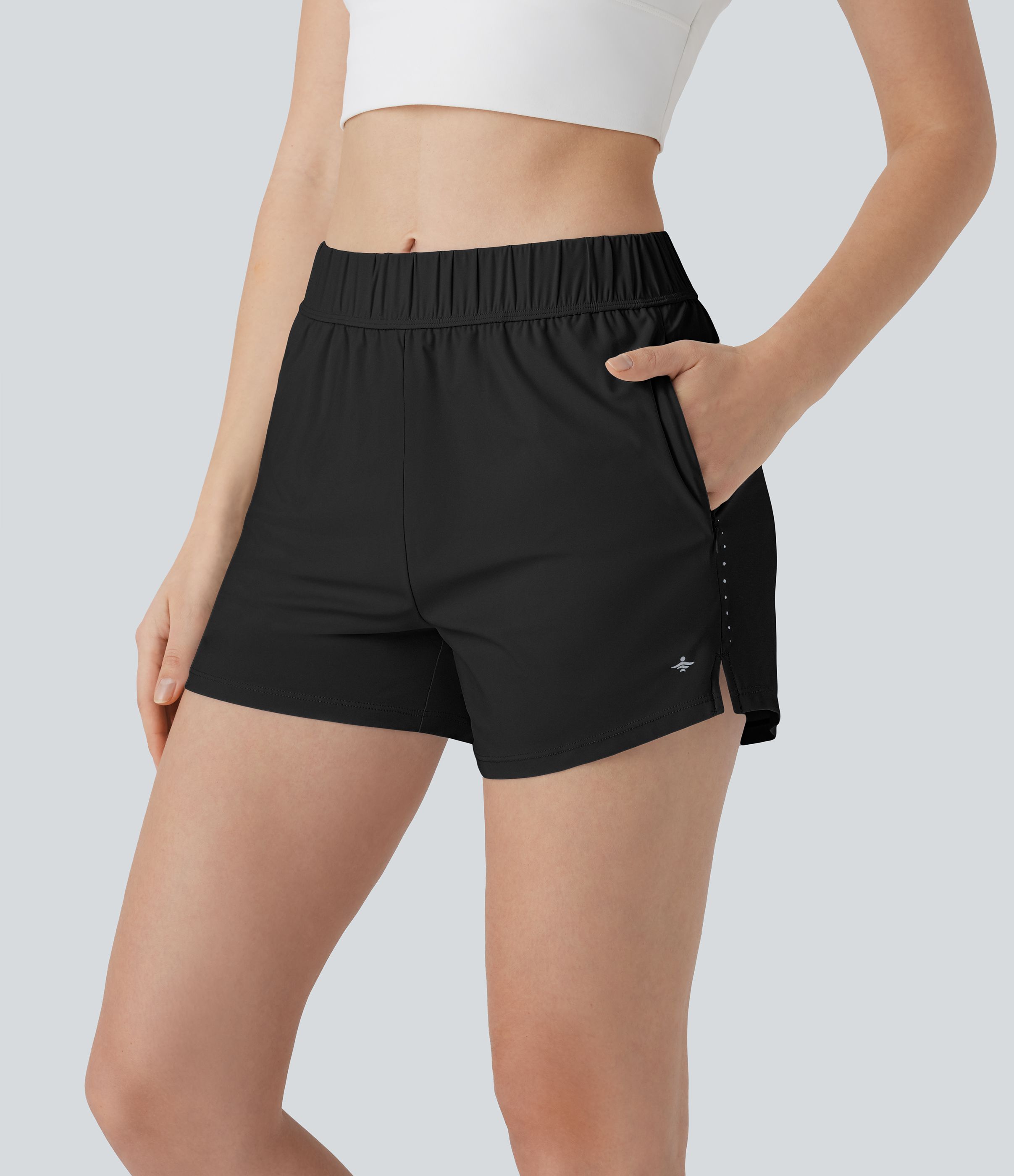 Short de course à pied taille mi-haute avec poches zippées latérales, points réfléchissants et fente toucher frais séchage rapide