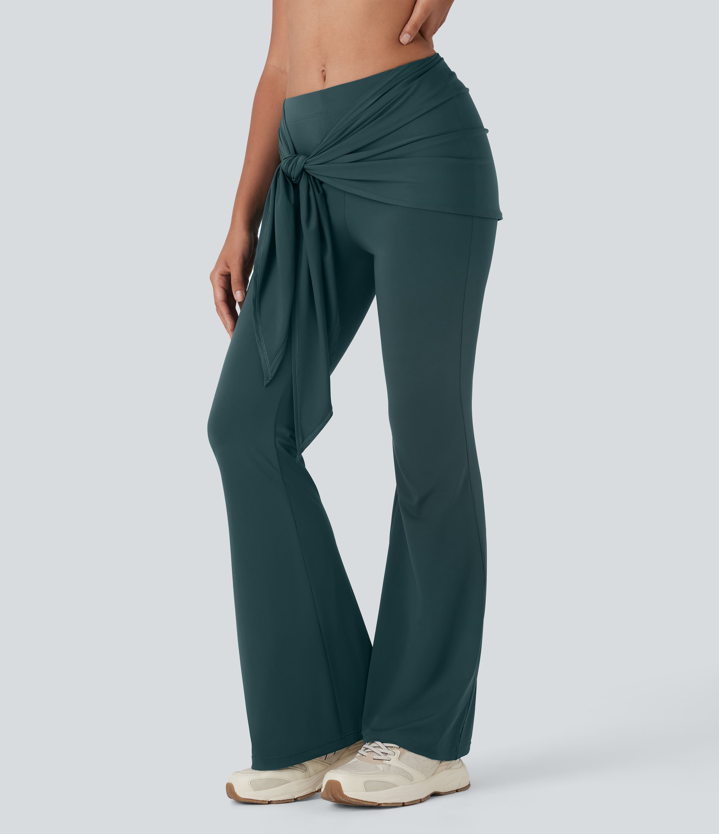 Pantalon de yoga évasé taille moyenne avec façade croisée nouée et toucher frais