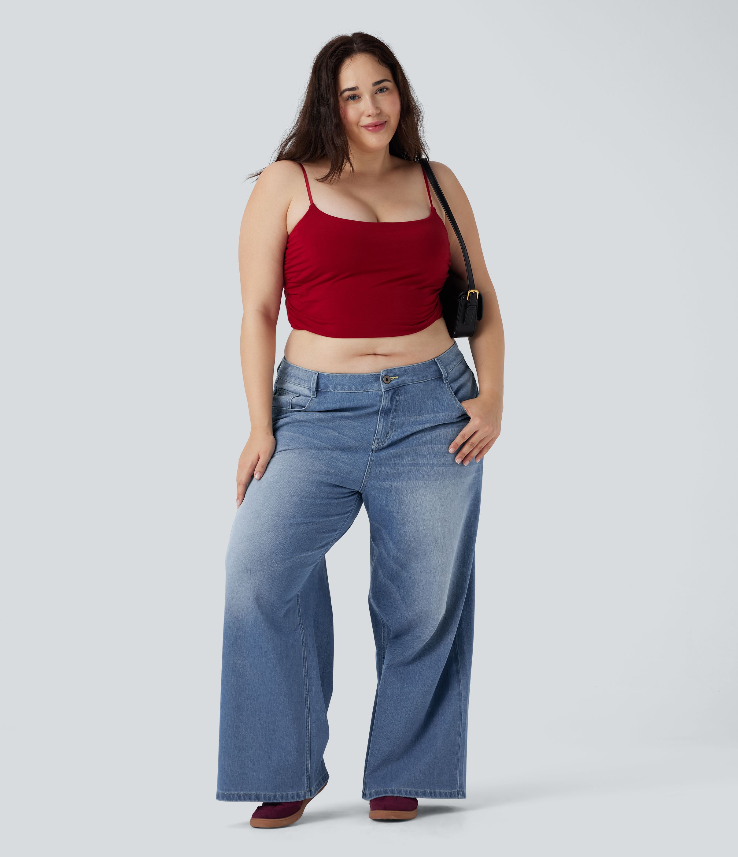 Halara Flex™ Plus Size Casual Wide Leg Low Waist Stretch Washed Jeans with Multiple Pockets
