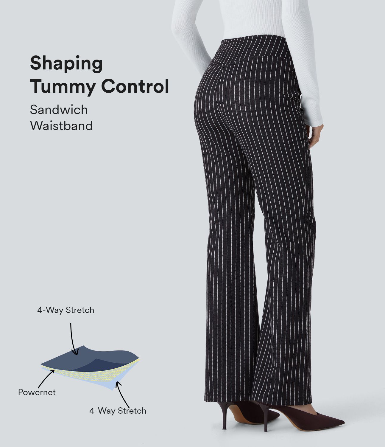 Pantalon de travail Halara Flex™ droit à rayures, taille haute, gainant, avec poches