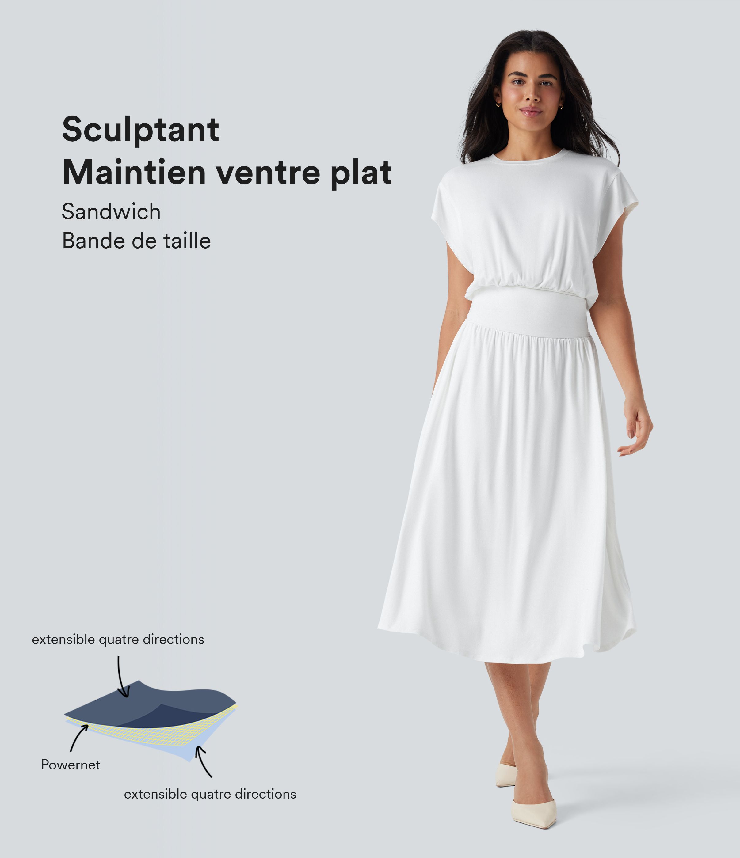 Robe de travail mi-longue fluide gainante à manches chauve-souris avec poches