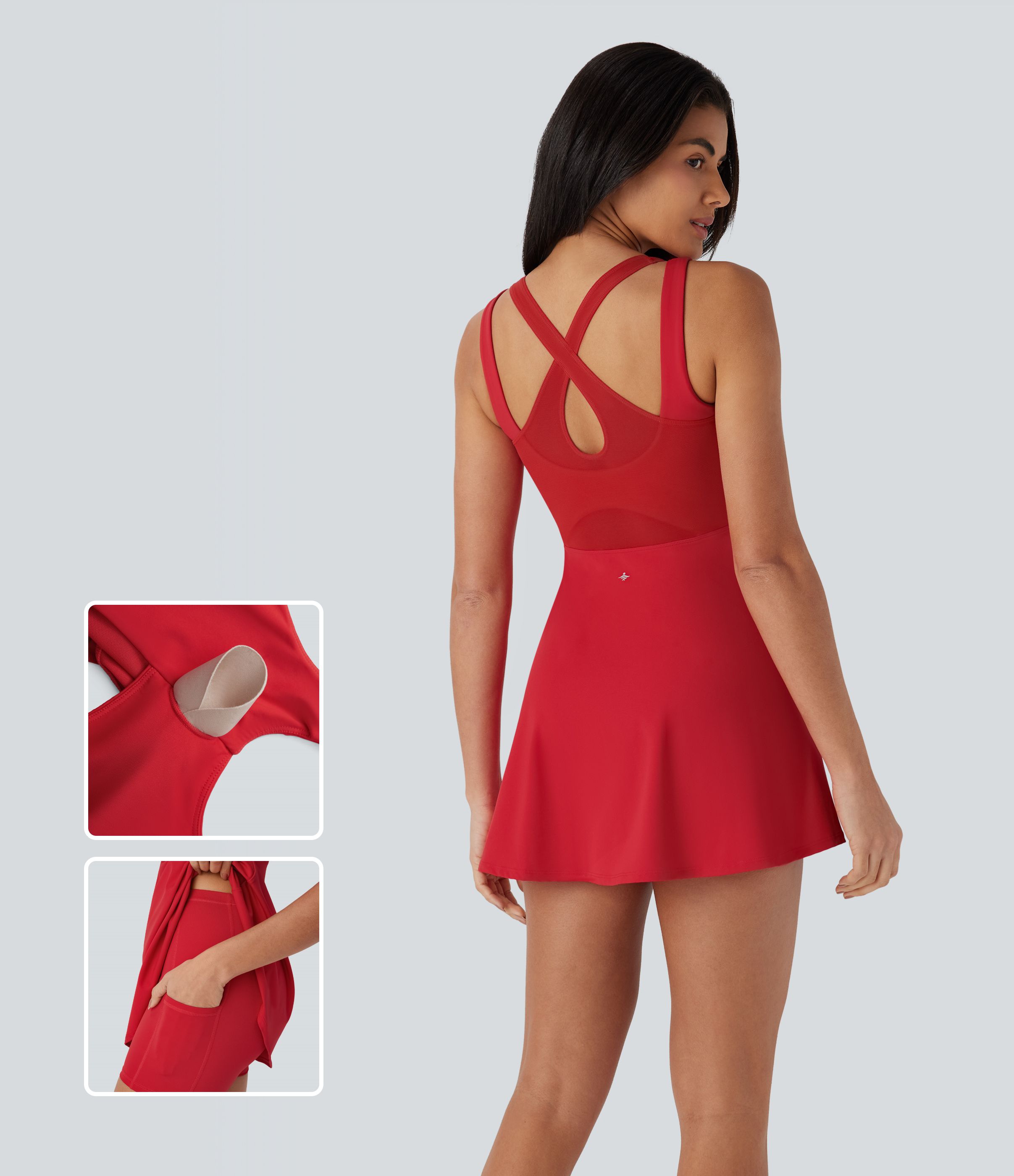 Mini-robe active de danse Softlyzero™ Airy 2 pièces avec dos nu, bretelles croisées, découpes, toucher frais, poches latérales et protection UPF50+