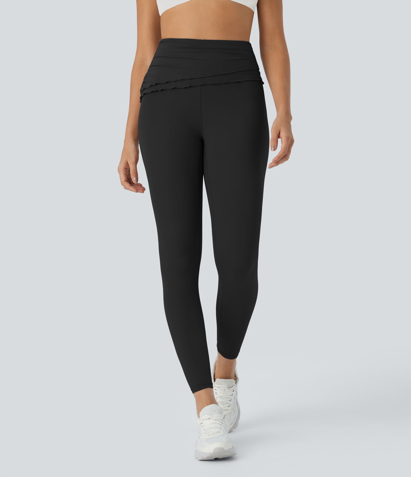Softlyzero™ Legging Yoga Taille Haute avec Revers Plissé et Bordure en Laitue à Longueur de Cheville - UPF50+