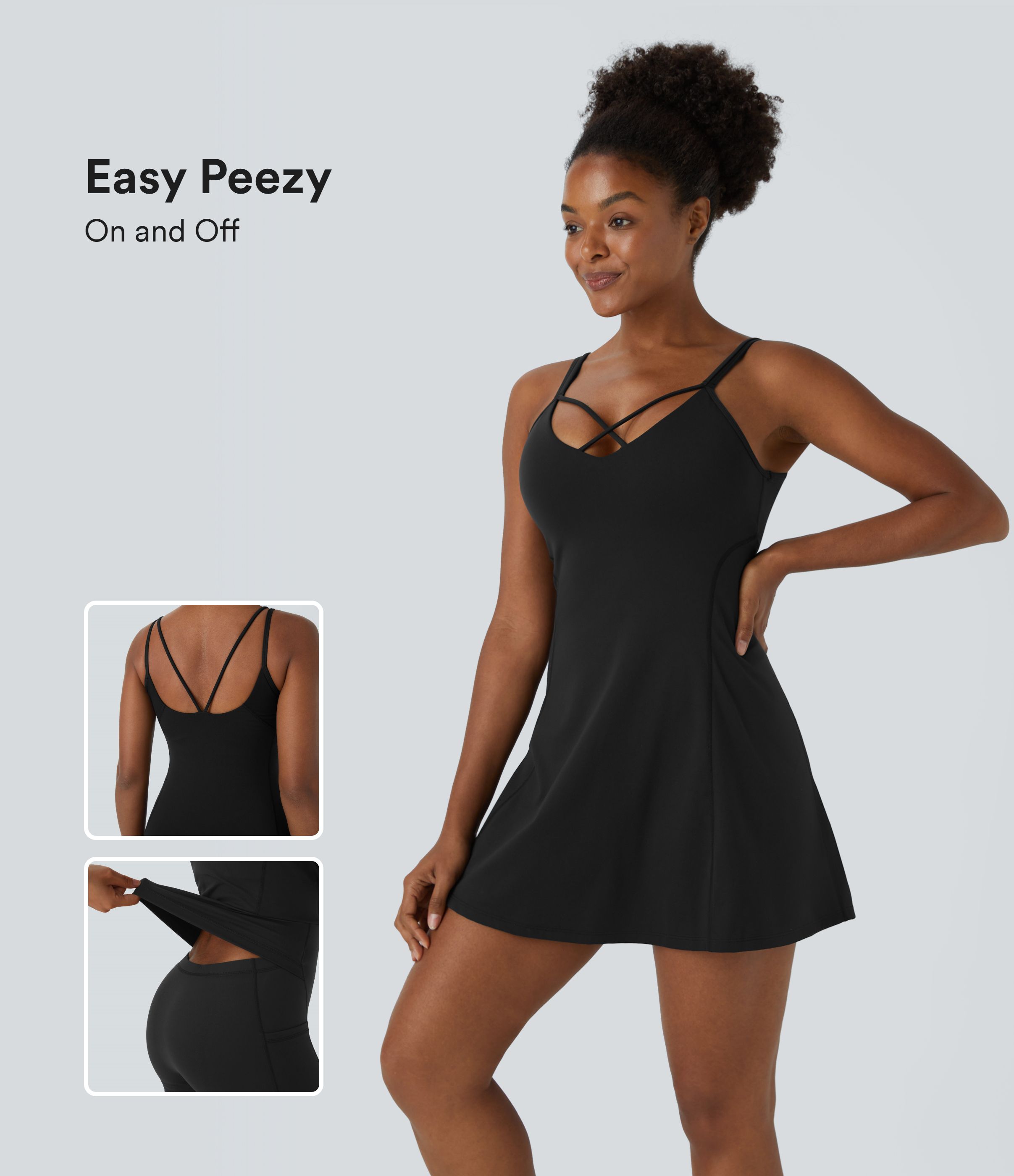 Softlyzero™ Plush Robe Sport Mini Yoga 2 en 1 avec Poches Dos Nu Croisé - Édition Easy Peasy - UPF50+