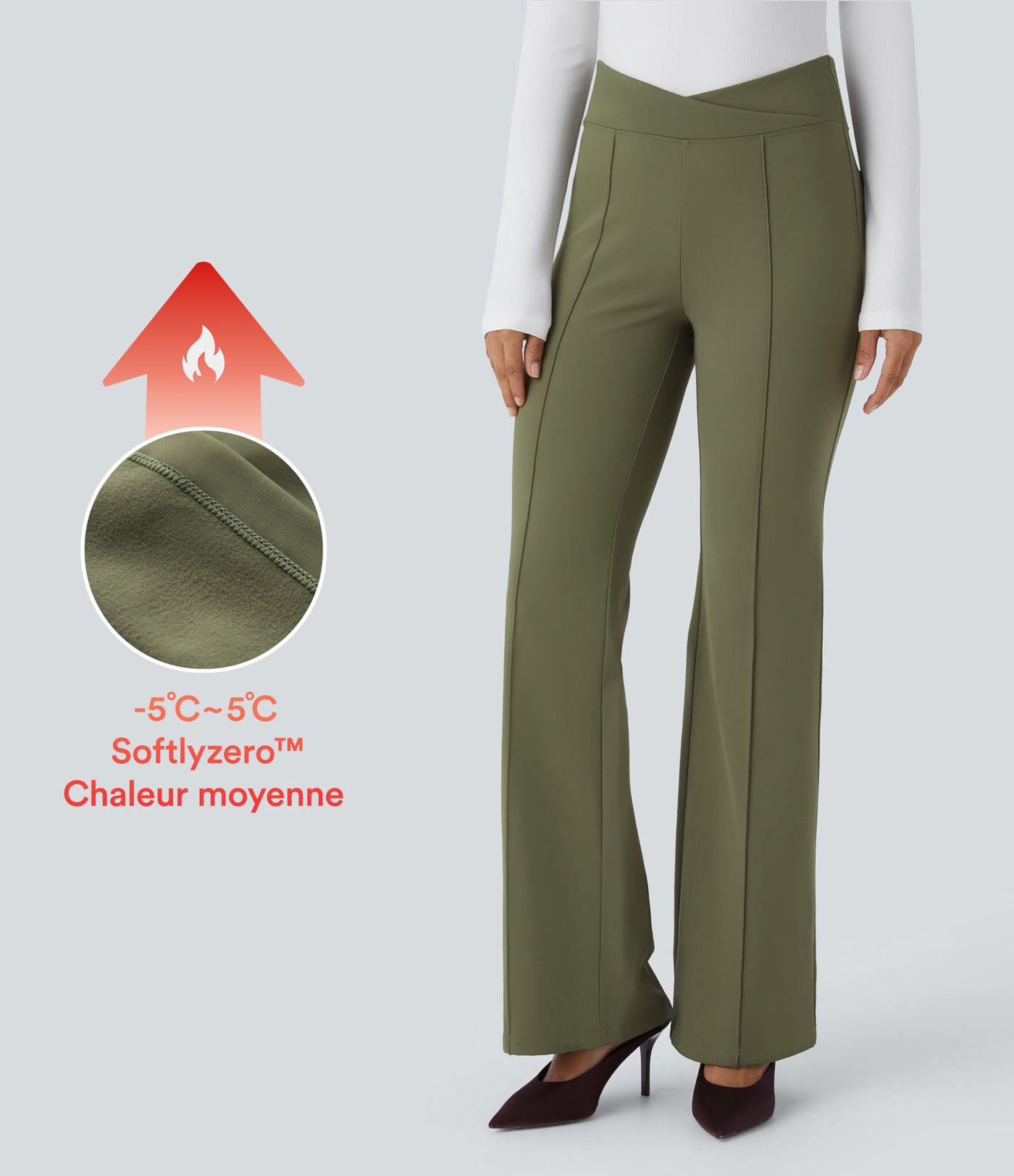 Pantalon évasé de ville Softlyzero™ thermique effet croisé taille haute avec poches arrière