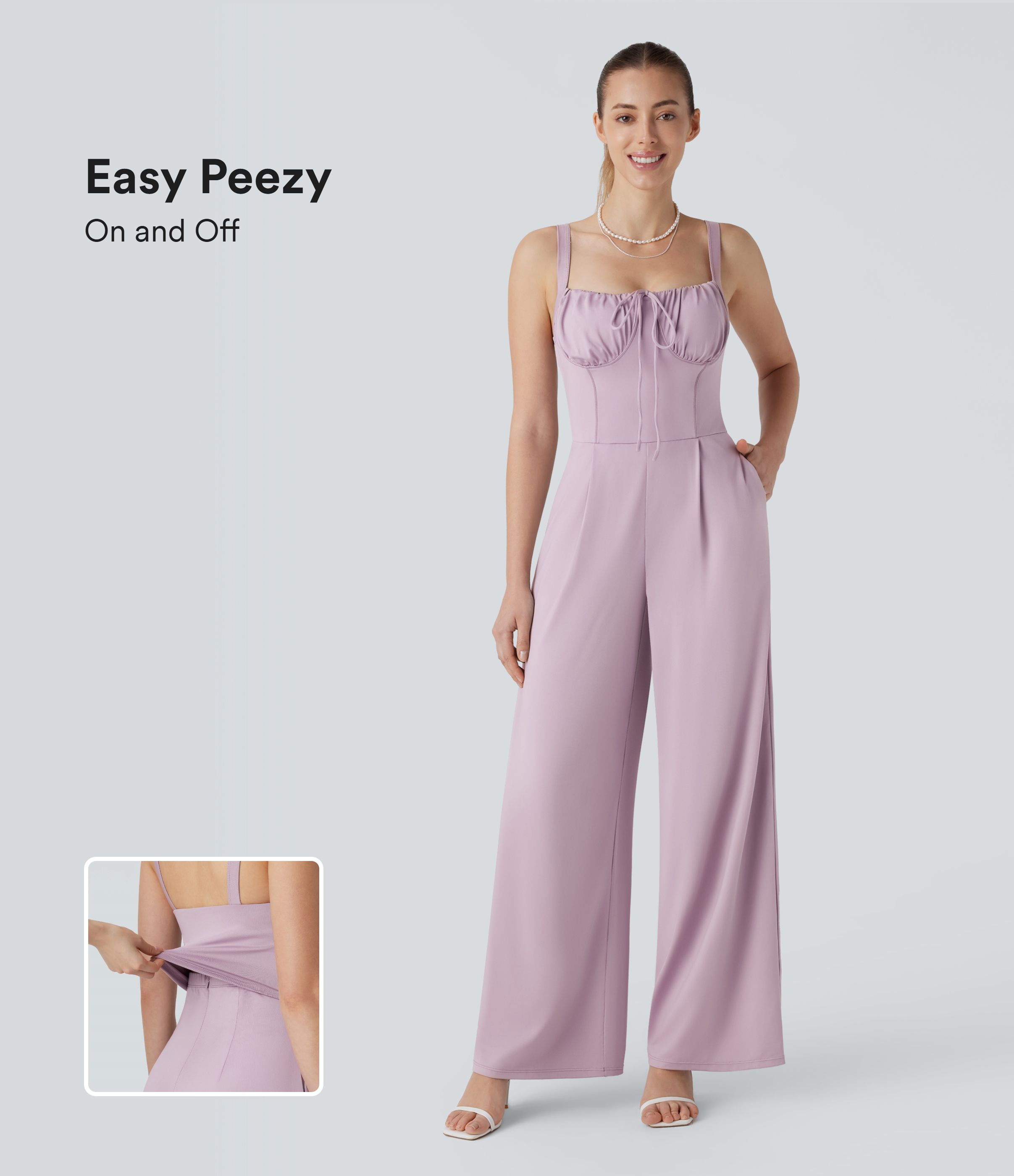 Combinaison col carré froncée avec cordon d'ajustement style paysanne poches latérales jambe large demoiselle d'honneur et invitée de mariage - Édition Easy Peasy