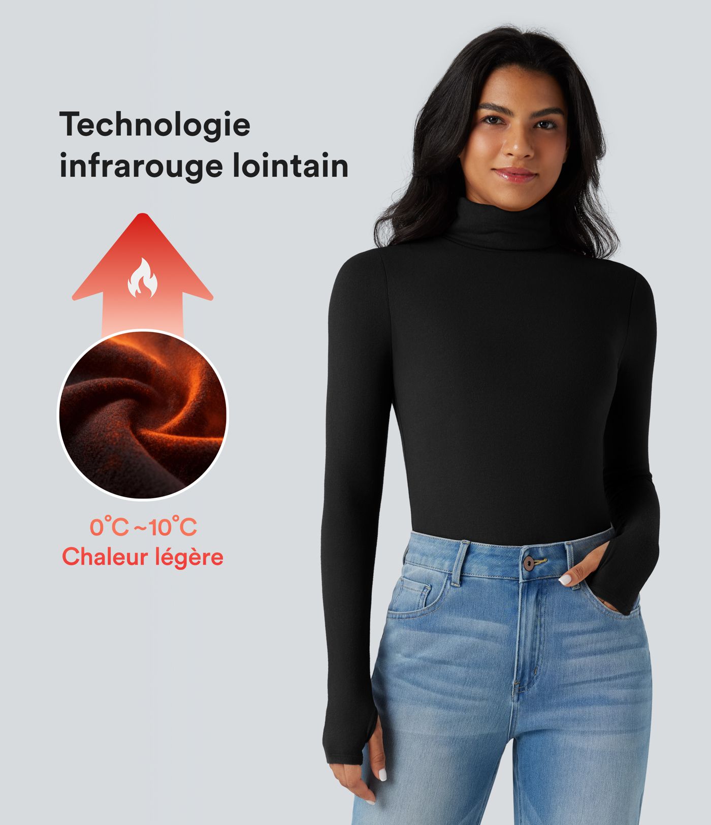 Top réchauffant col roulé manches longues avec trous pouces