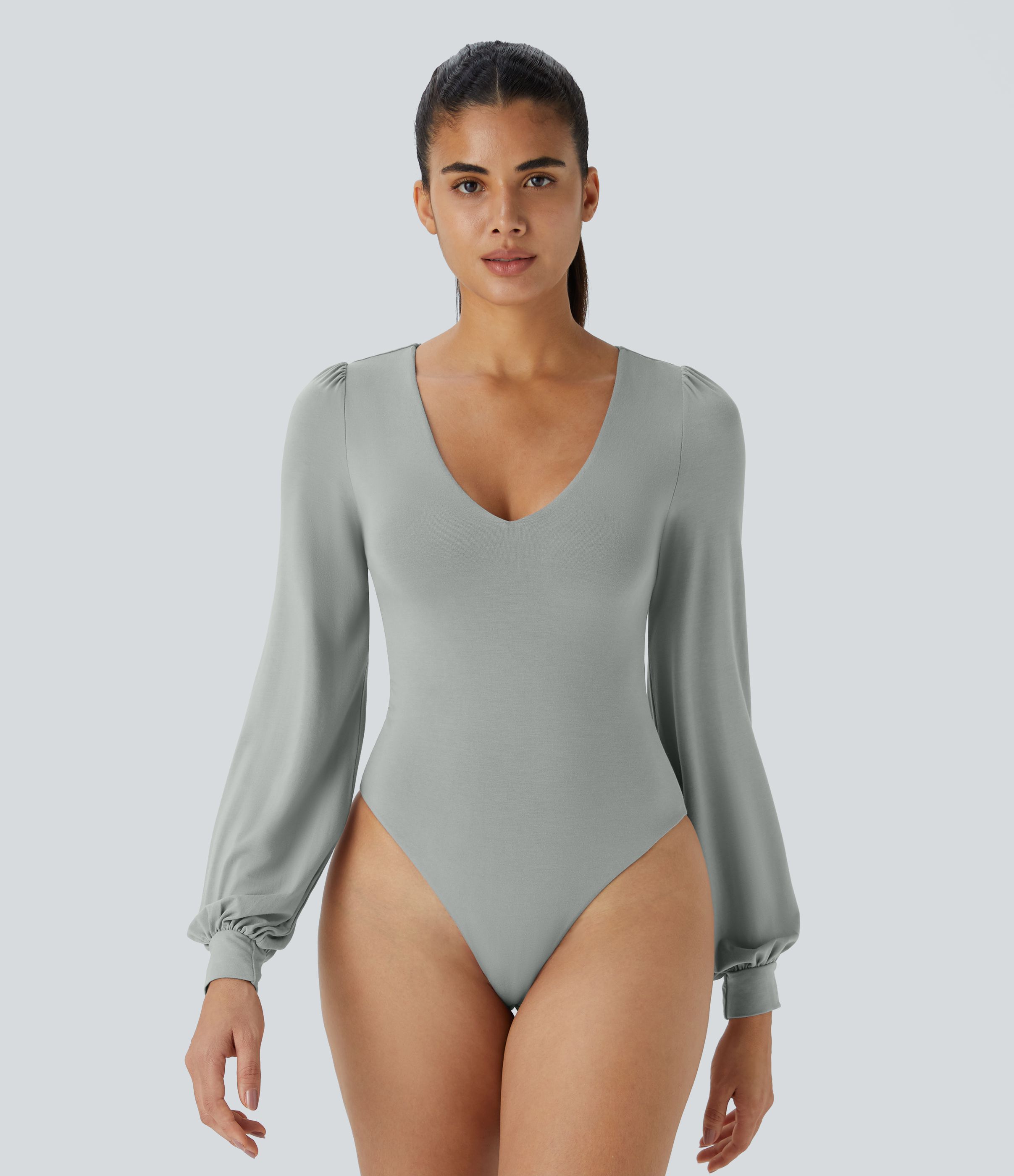 Body Travail à Boutons Col en V Manches Longues