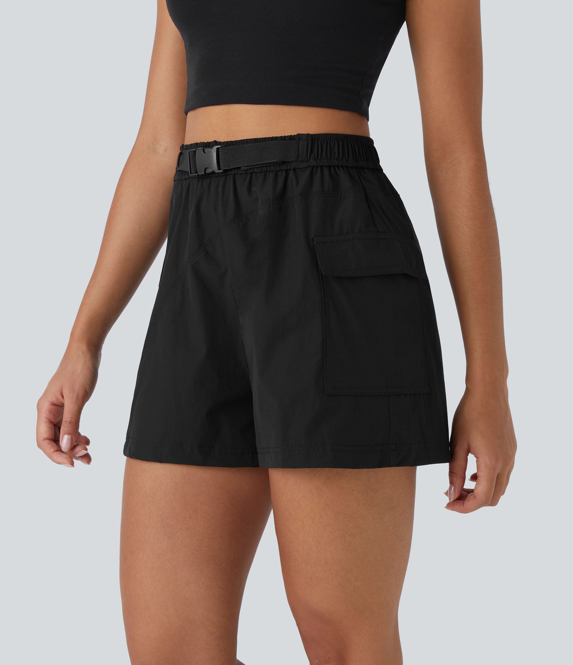 Short Randonnée Cargo Imperméable à Taille Haute avec Ceinture et Poches Latérales