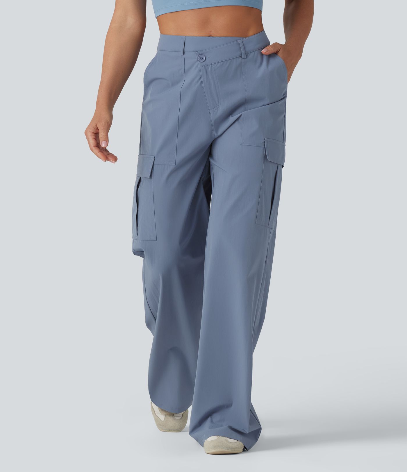 Pantalon cargo casual large asymétrique taille mi-haute avec poches