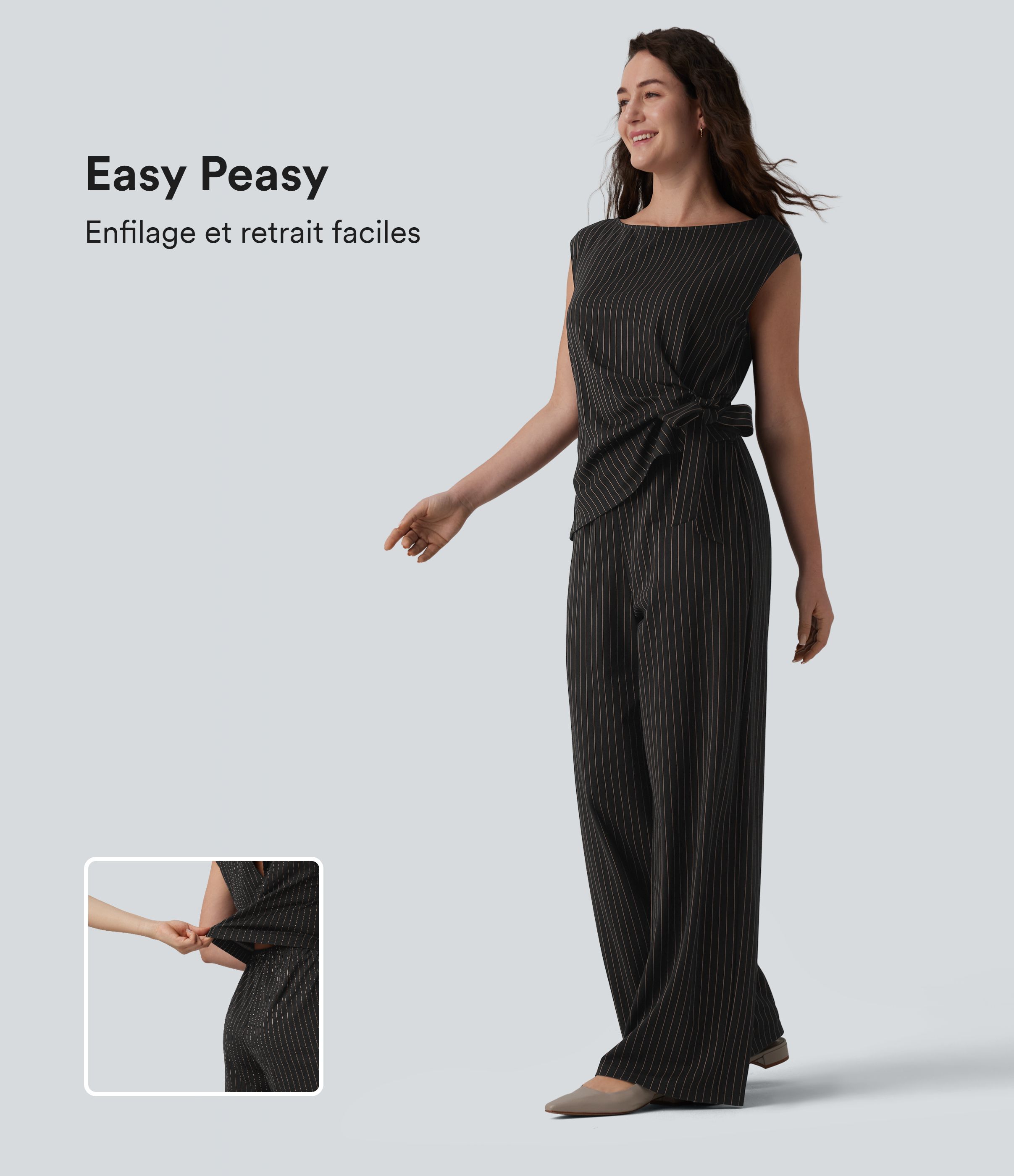 Combinaison tailleur col bateau sans manches à rayures et nœuds latéraux toucher frais avec poches - Édition Easy Peasy