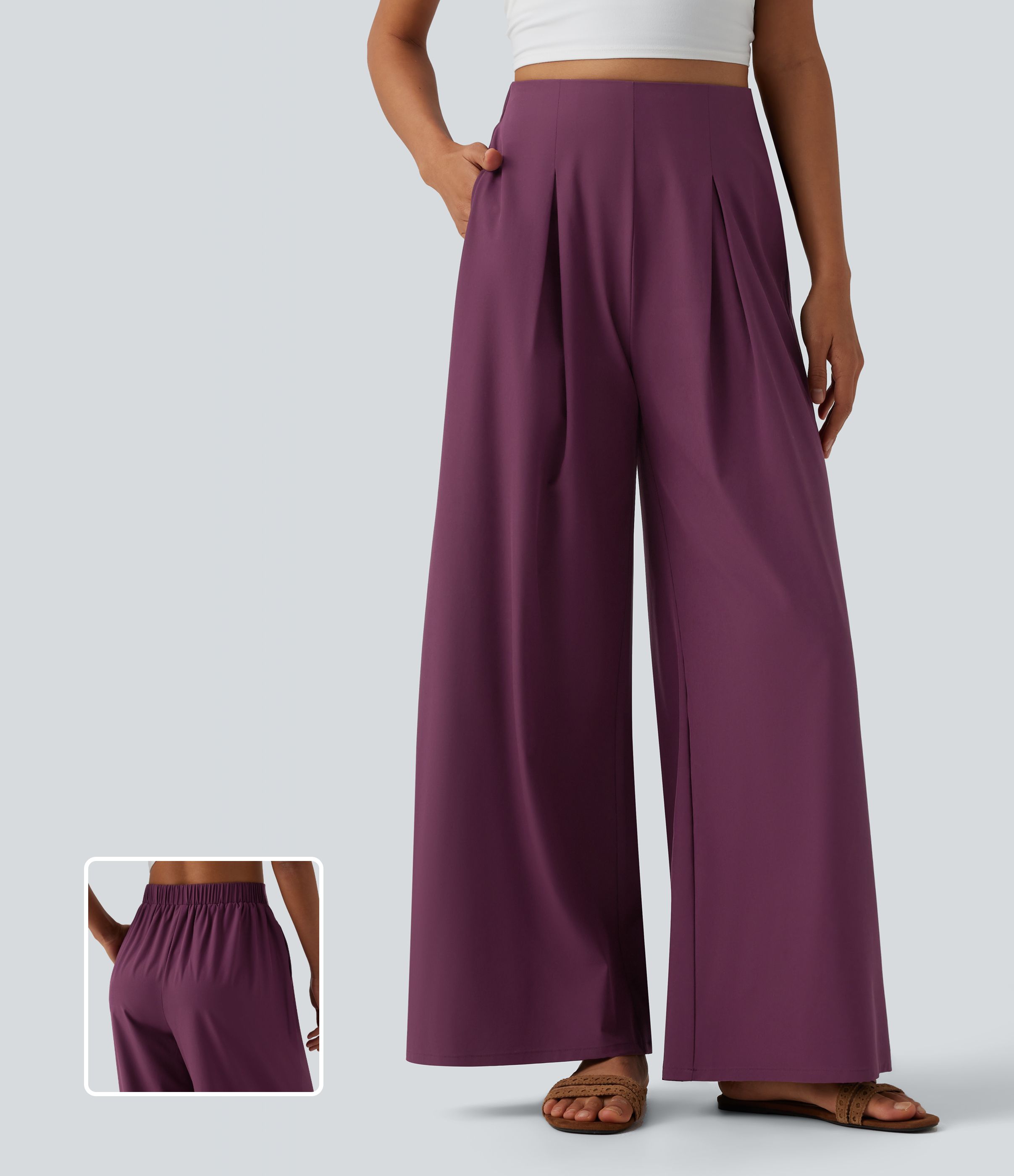 Pantalon large fluide resort plissé taille haute séchage rapide Breezeful™ avec poches