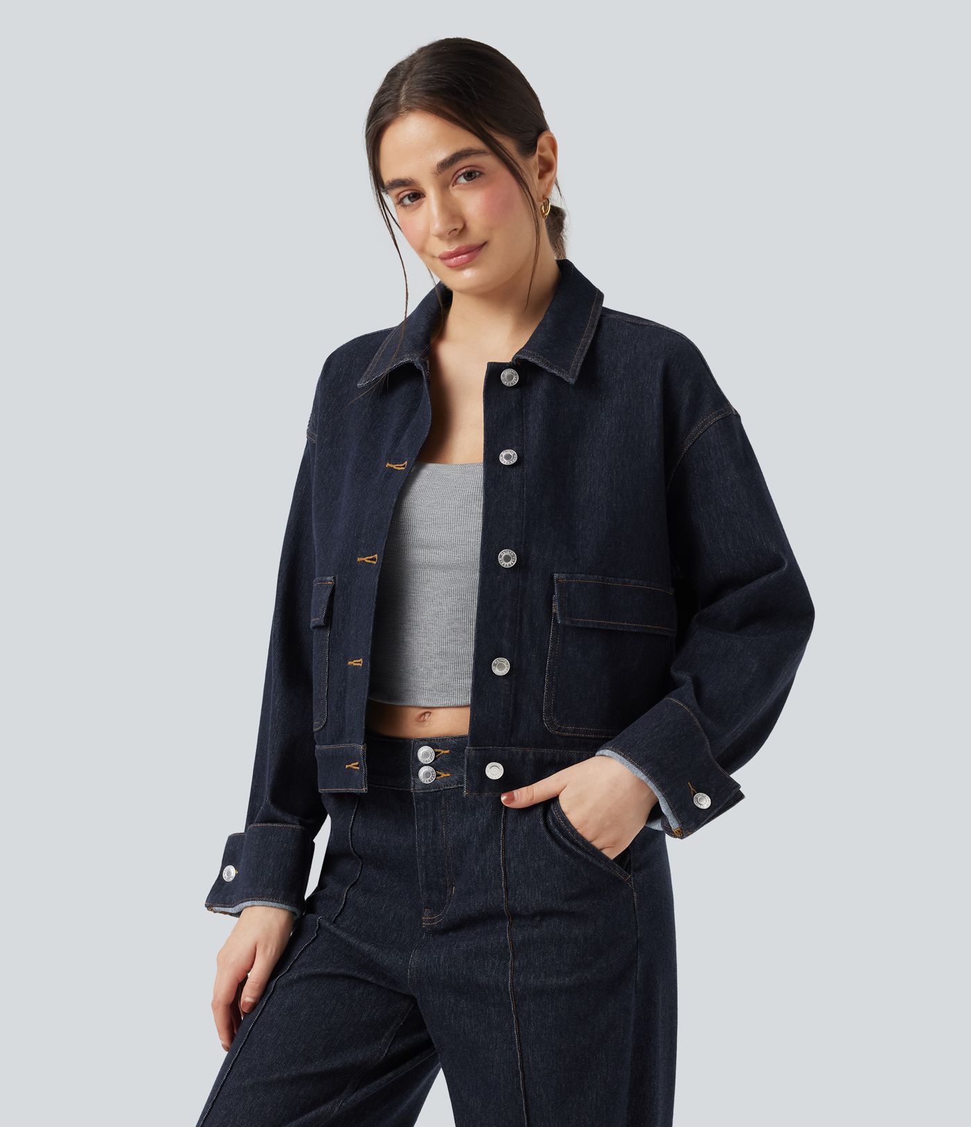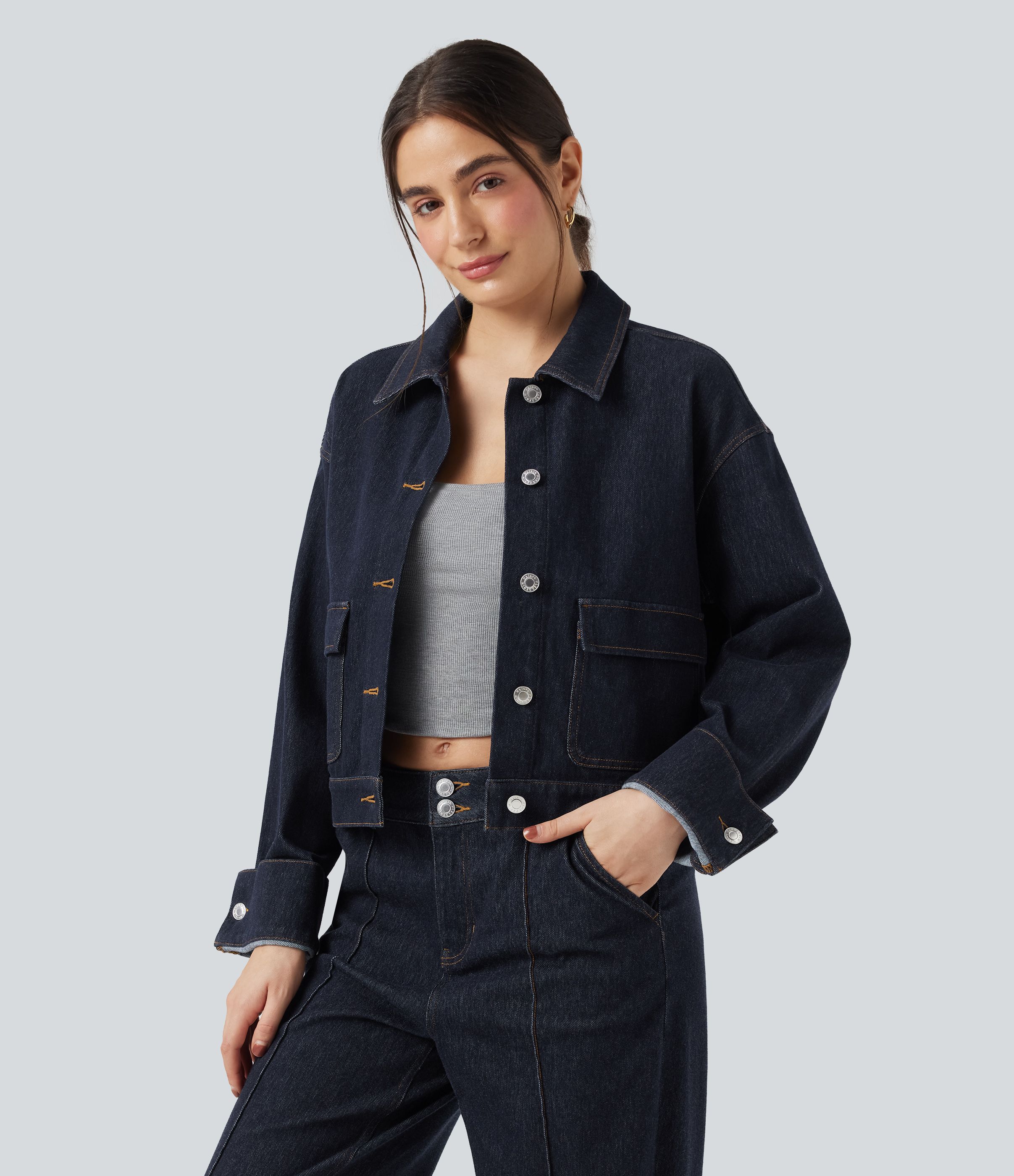 Veste denim Halara Flex™ col chemise manches longues