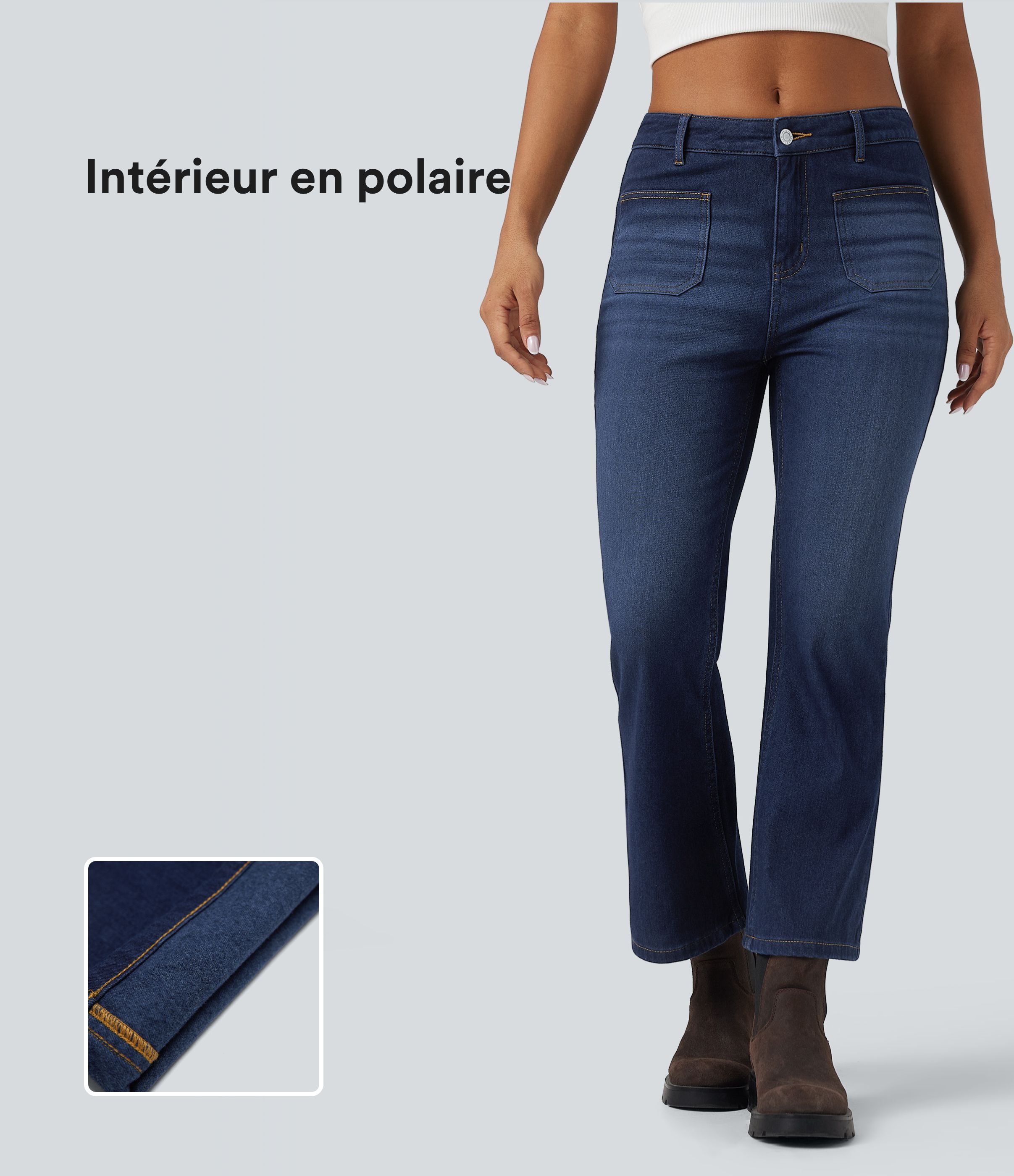 Jean bootcut polaire denim Halara Flex™ taille mi-haute avec poches