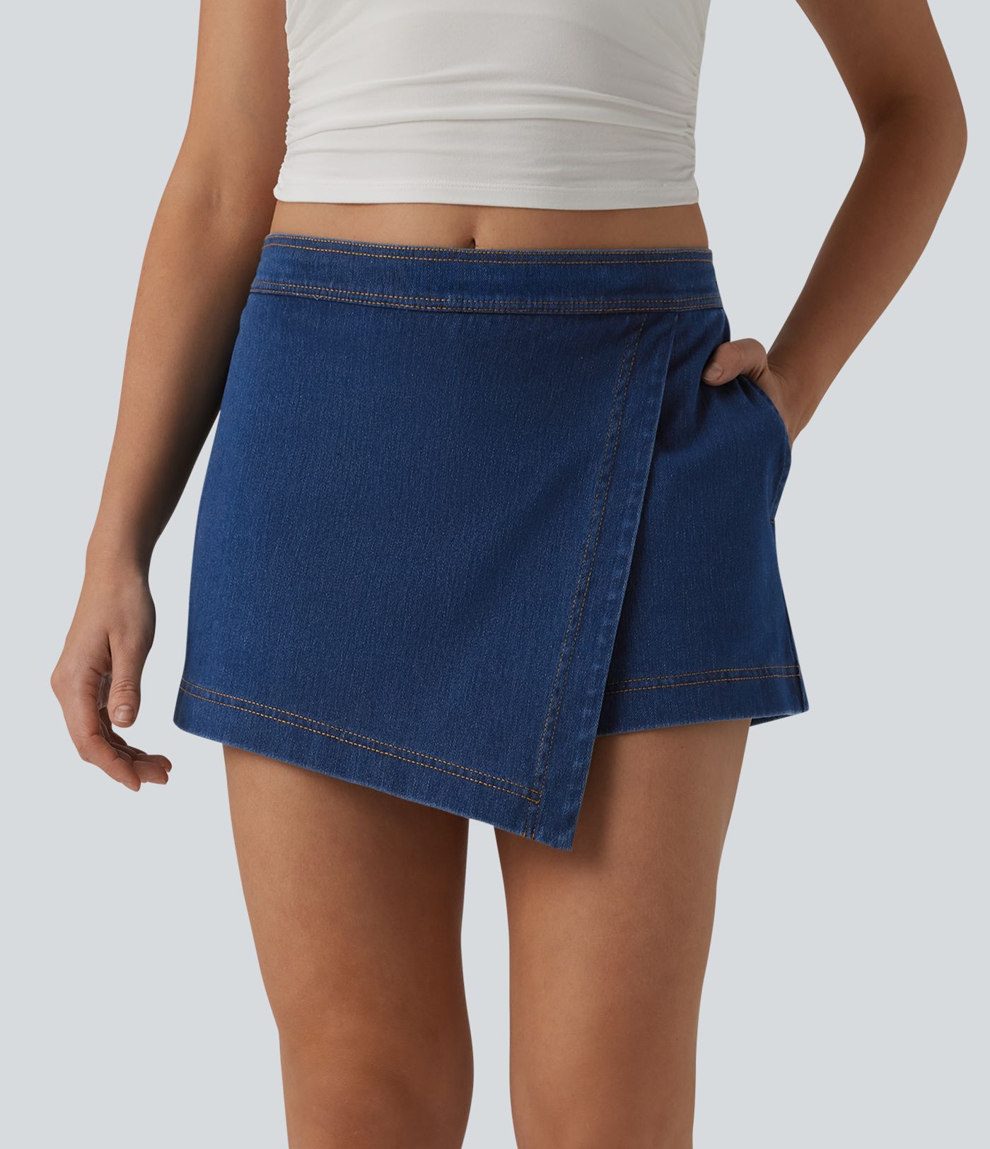 Jupe-short Halara Flex™ en jean casual taille mi-haute micro mini avec poches