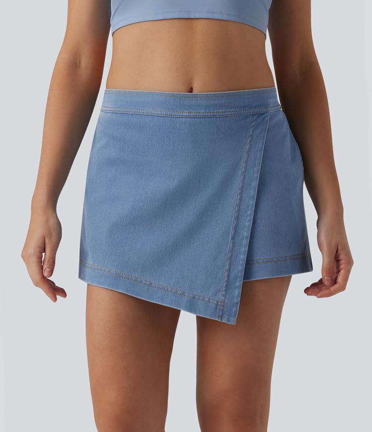 Jupe-short Halara Flex™ en jean casual taille mi-haute micro mini avec poches