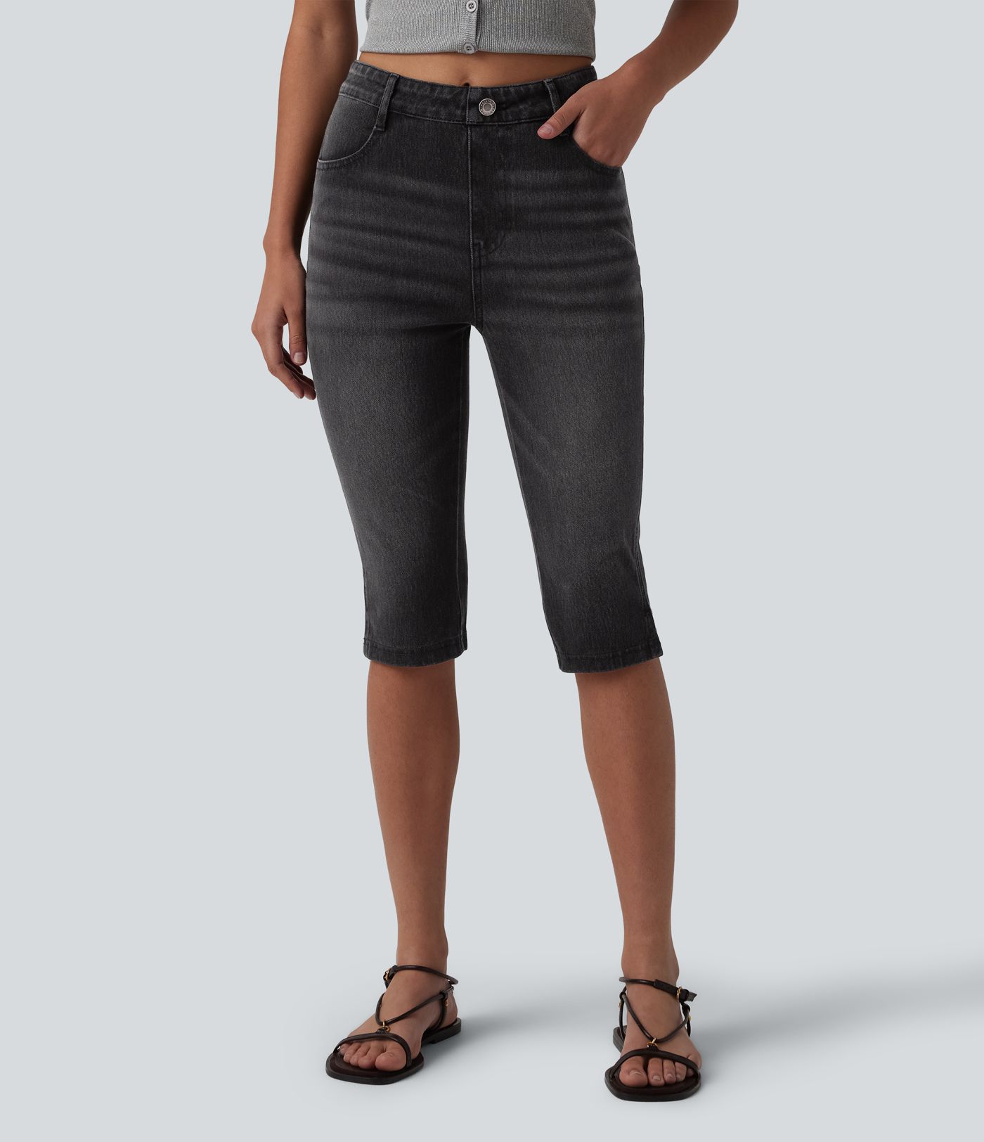 Halara Flex™ jeans casual slim de tiro medio con abertura en el bajo, estilo pedal pushers, con bolsillos