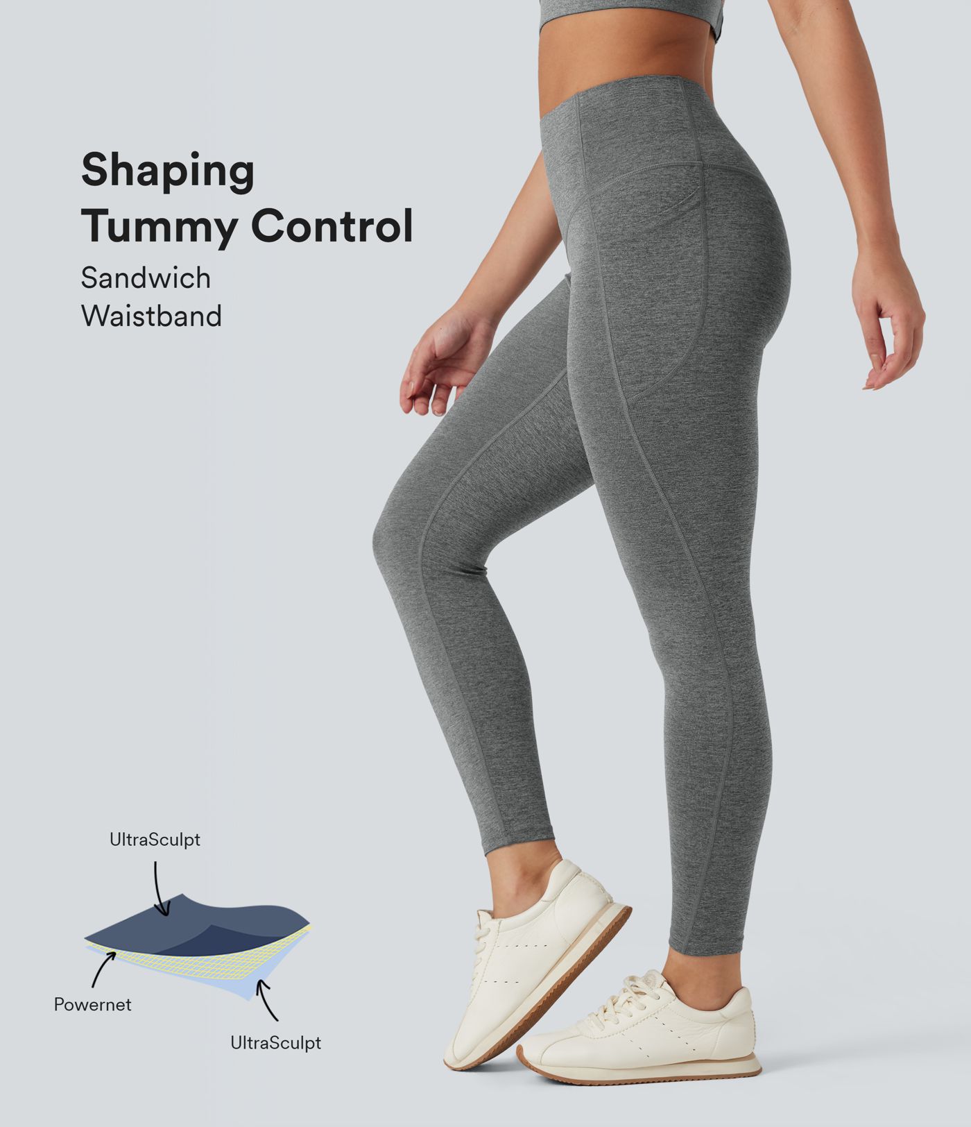 Legging de yoga gainant taille haute chiné à séchage rapide avec poches Halara UltraSculpt™