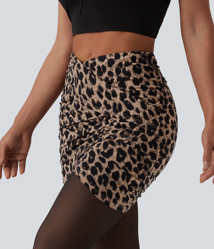 Jupe mini moulante 2-en-1 Halara UltraSculpt™ taille haute croisée imprimé léopard - Longueur rallongée