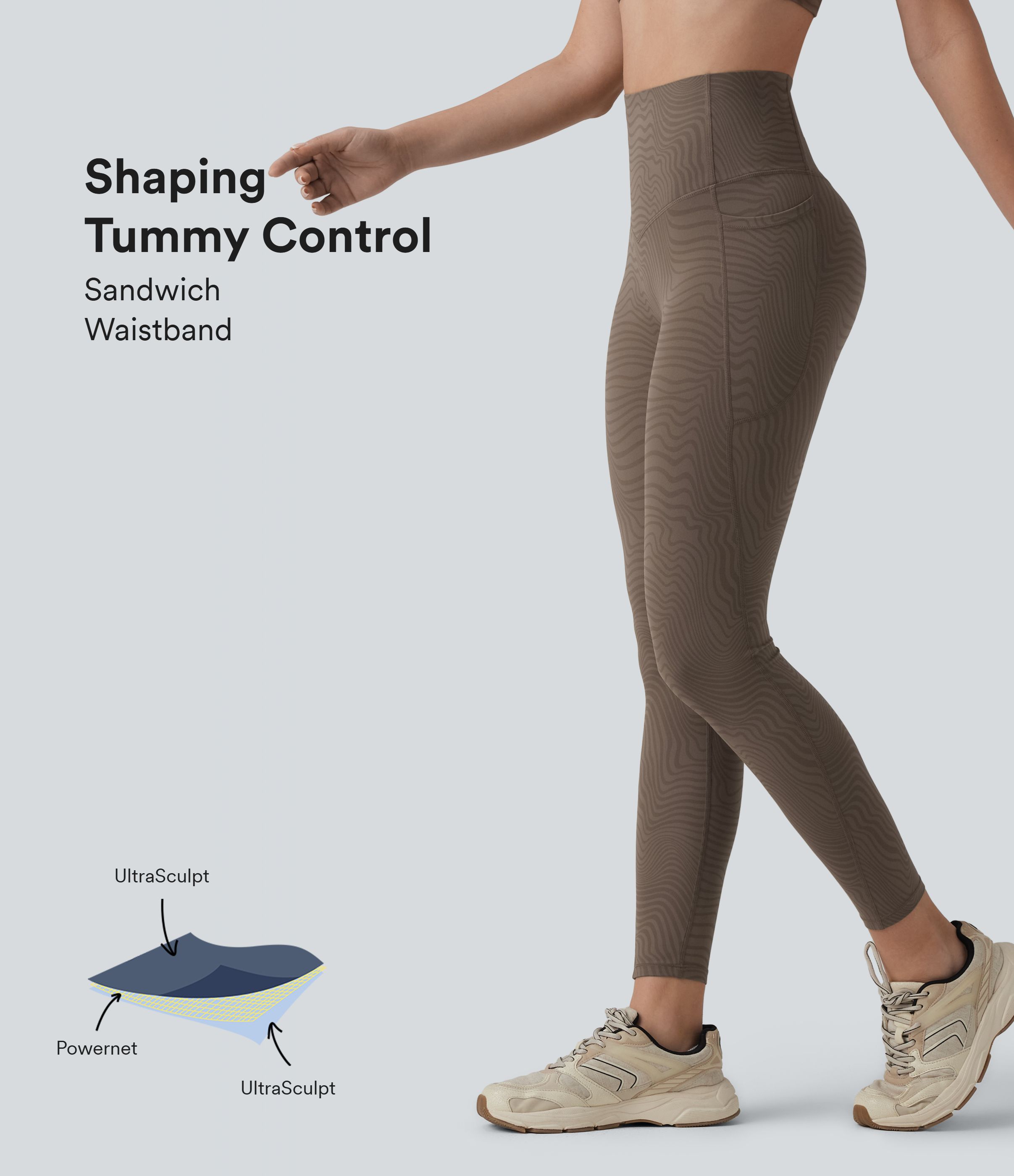 Halara UltraSculpt™ Legging running gainant ventre plat taille haute imprimé rayures ondulées avec poches