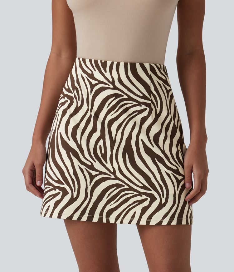 Casual 2-in-1 flared high-waisted zebra print mini skirt