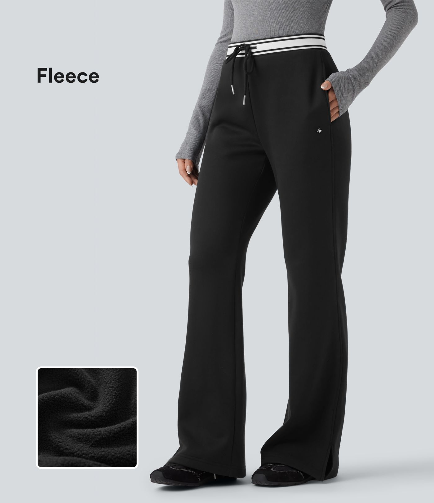 Pantalon jogging évasé molleton coton taille haute avec cordon de serrage, poches, empiècements contrastés et ourlet fend