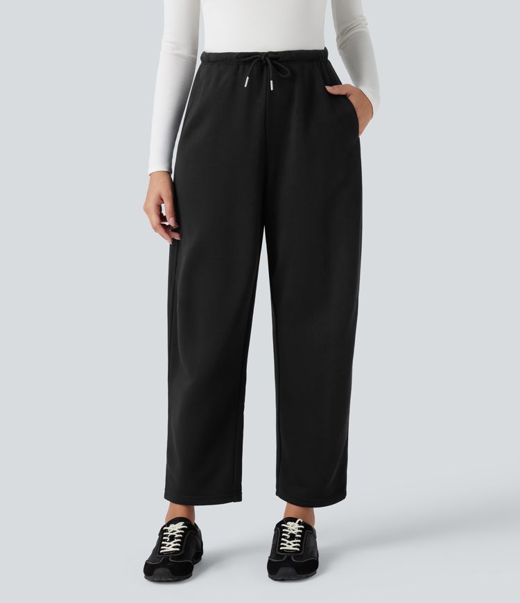 Pantalon jogging barrel chiné taille haute avec cordon de serrage et poches