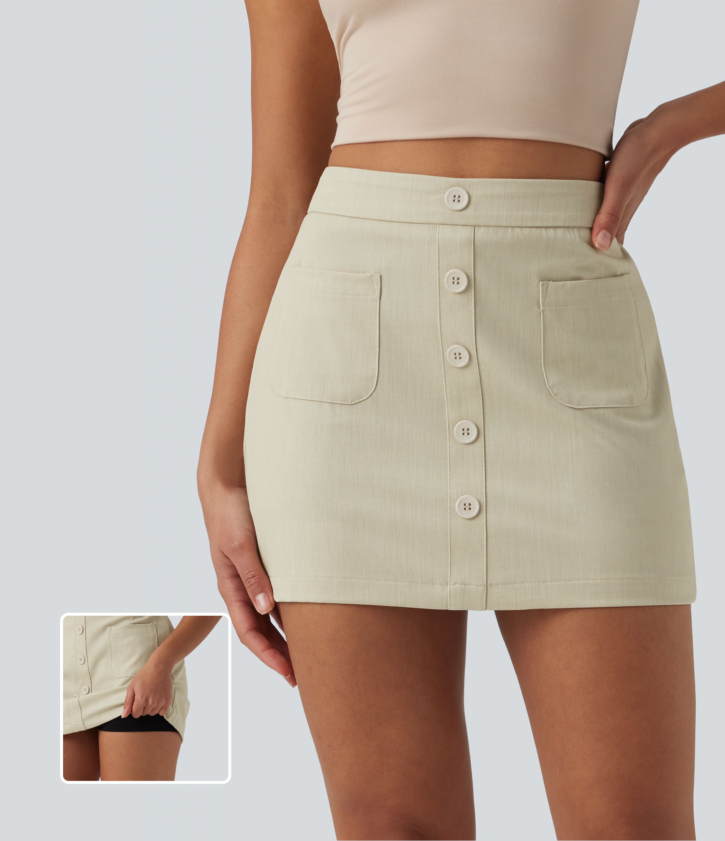 Jupe mini casual 2-en-1 moulante taille haute effet denim avec fermeture éclair invisible et poches