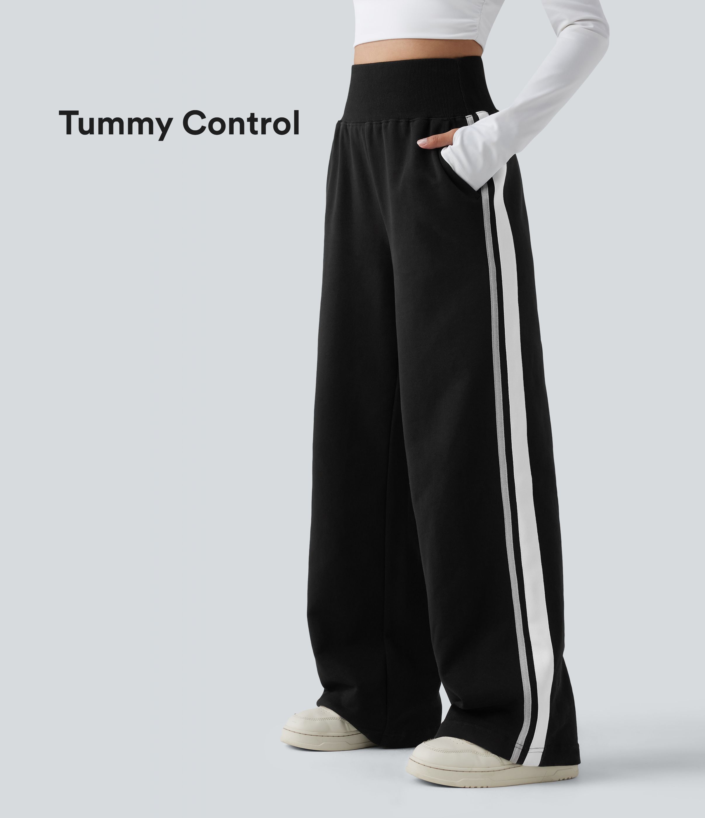 Pantalon de jogging casual coton large gainant à rayures taille haute avec poches
