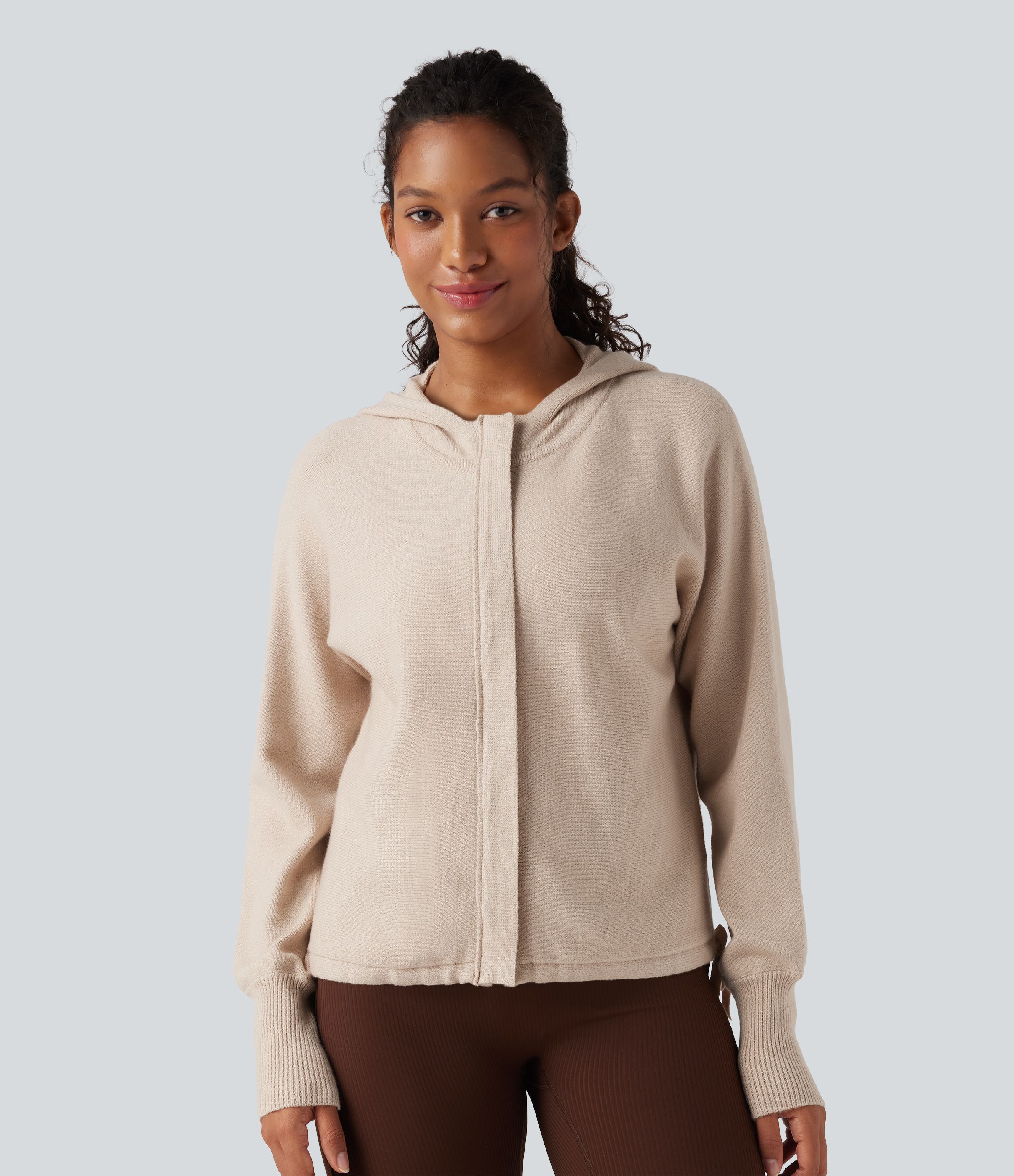 Cardigan décontracté à capuche, manches longues et cordon de serrage