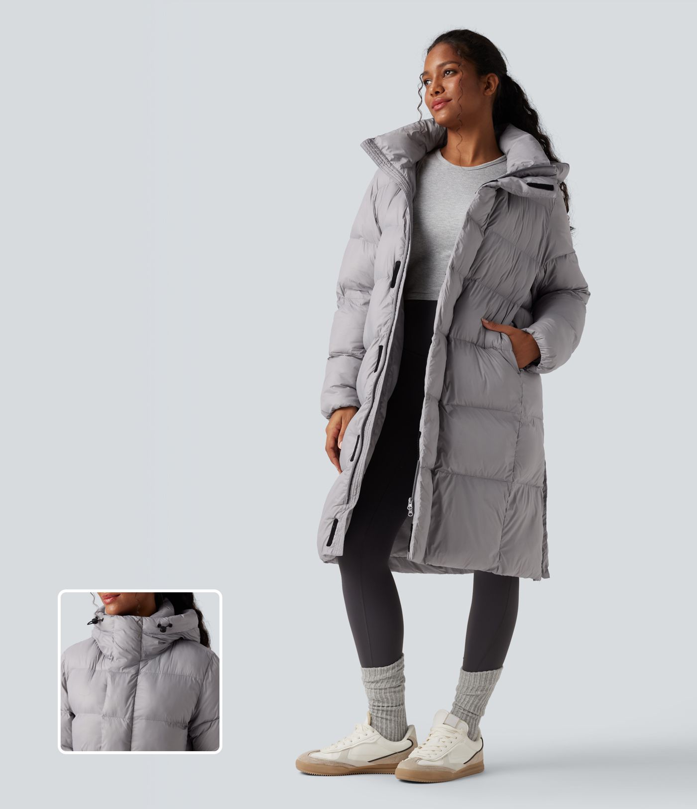 Doudoune longue à capuche zippée à manches longues avec poches