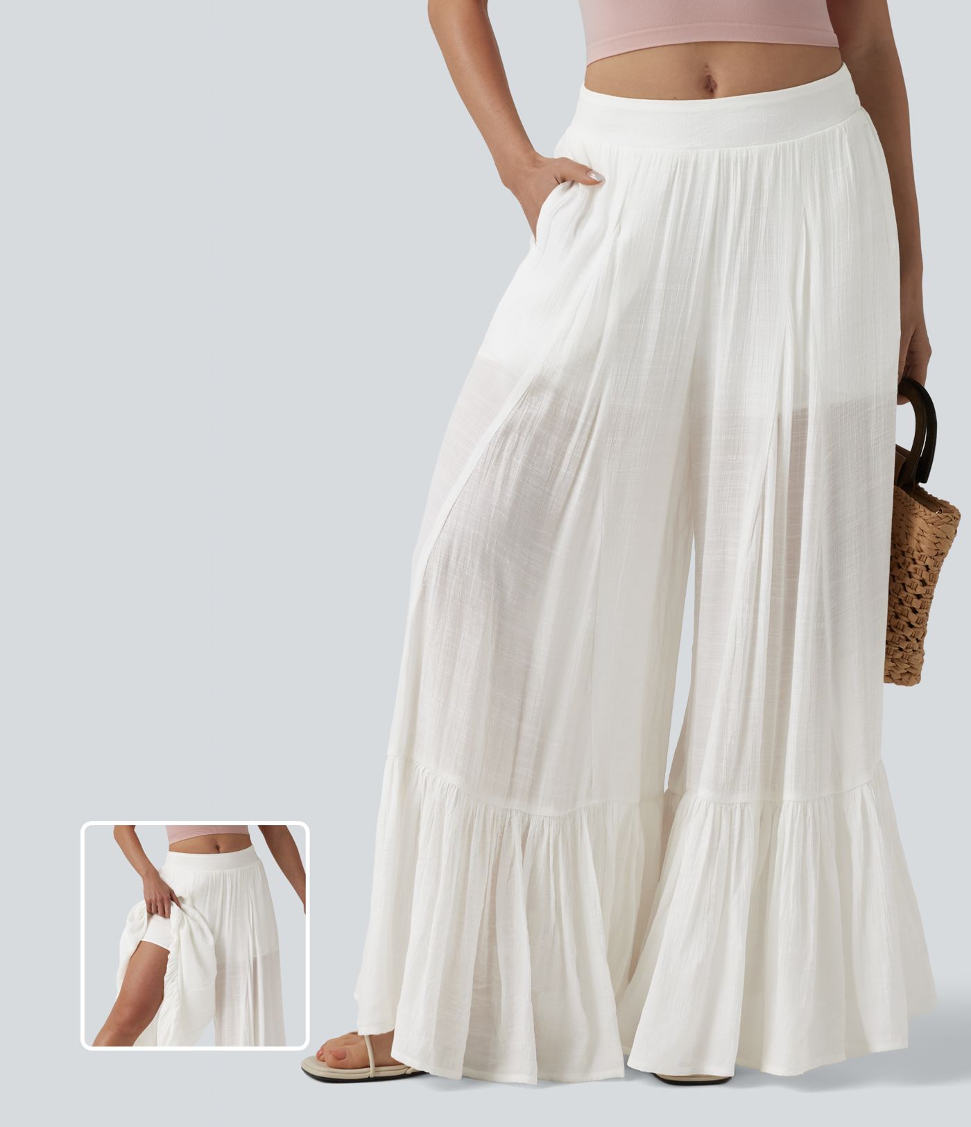 Pantalon baggy fluide taille mi-haute 2-en-1 avec poches