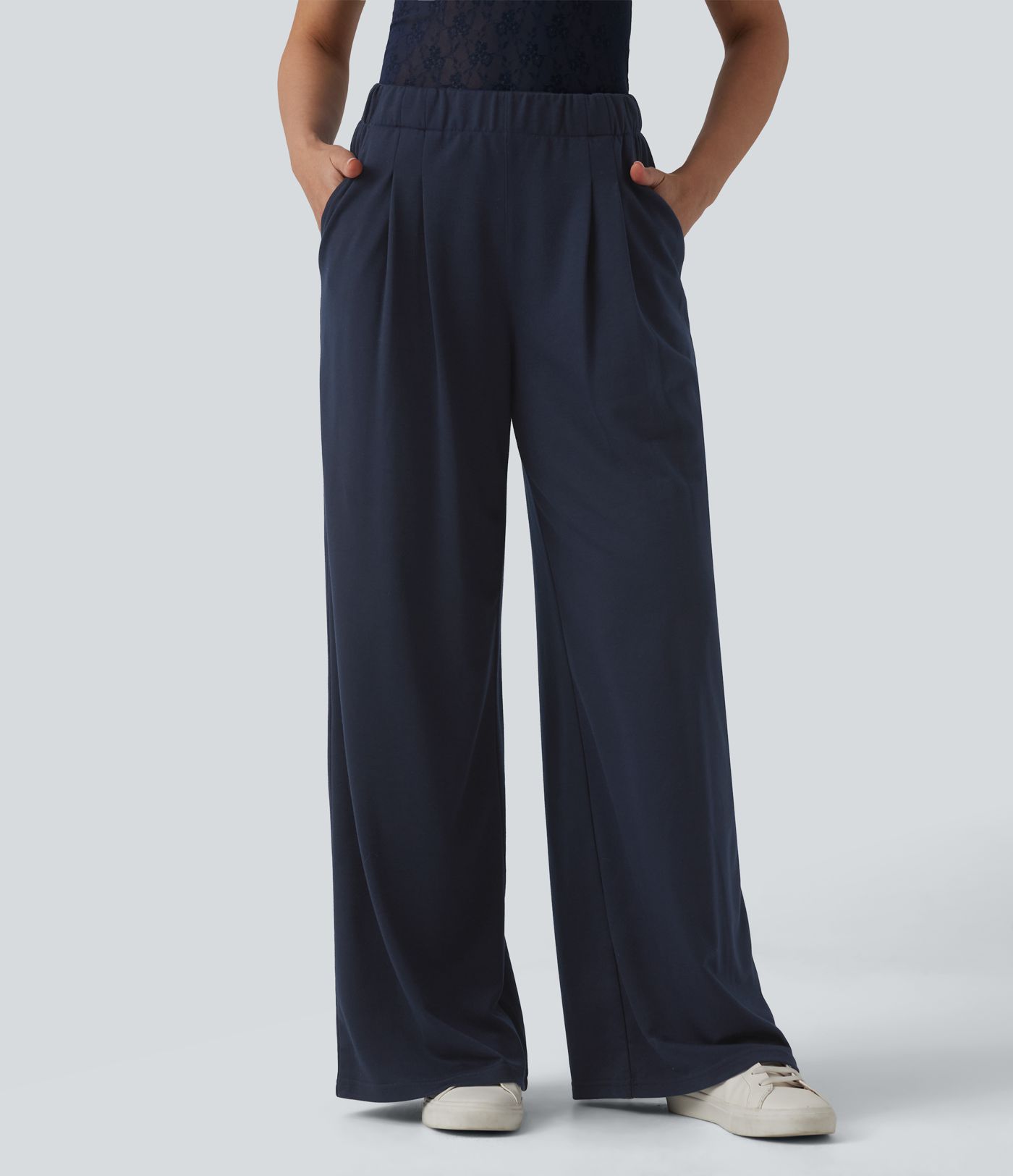 Jogging large décontracté taille mi-haute avec poches