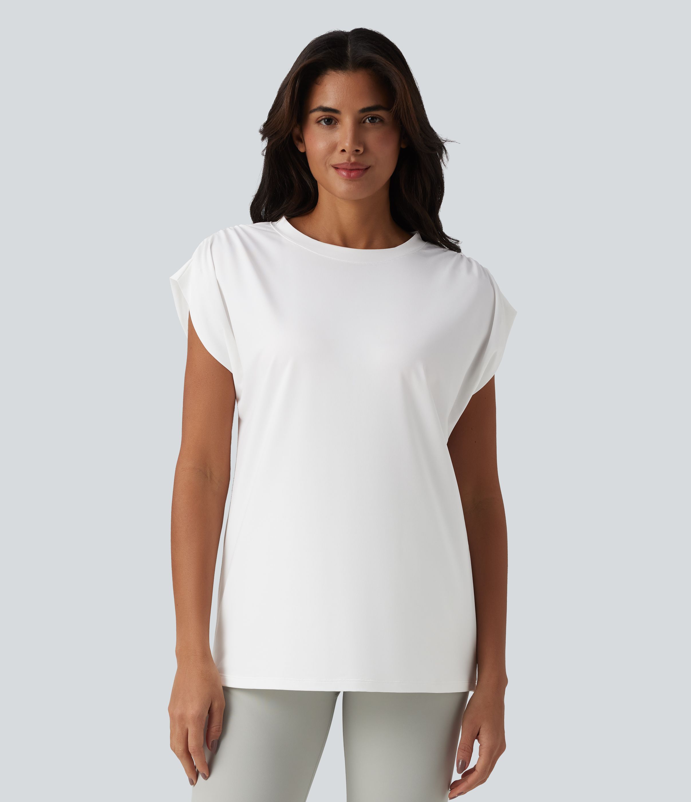 Top de sport yoga ample col rond sans manches avec fronces