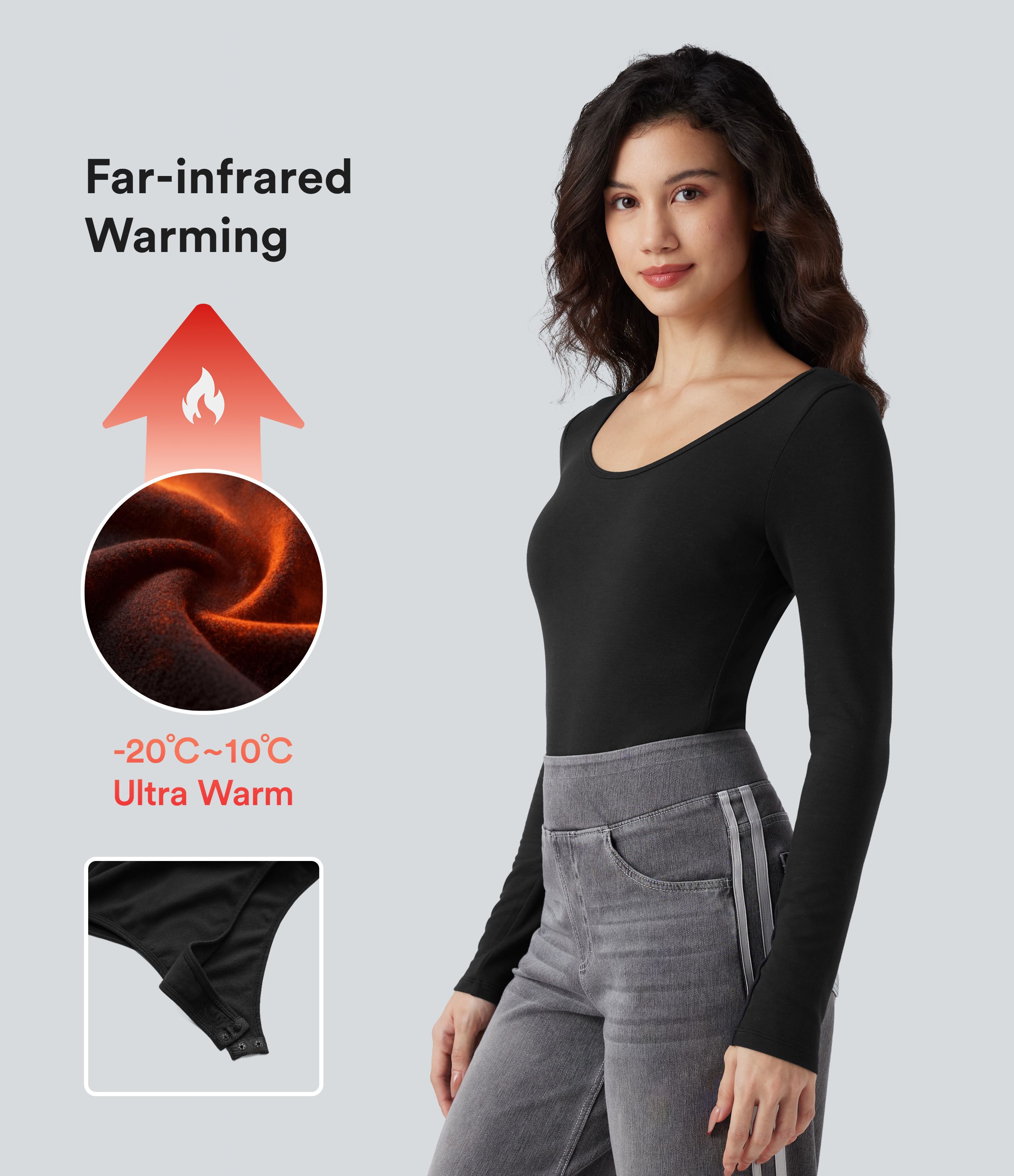 Body chauffant moulant décontracté encolure dégagée à manches longues