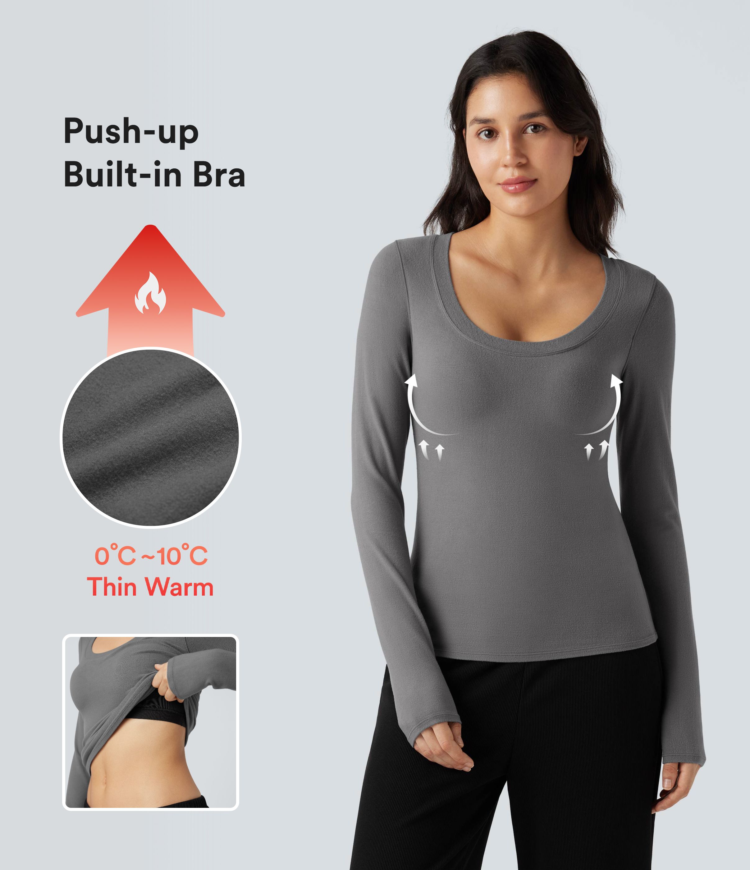Top casual chaud push-up à col arrondi et manches longues - Bonnet A/B