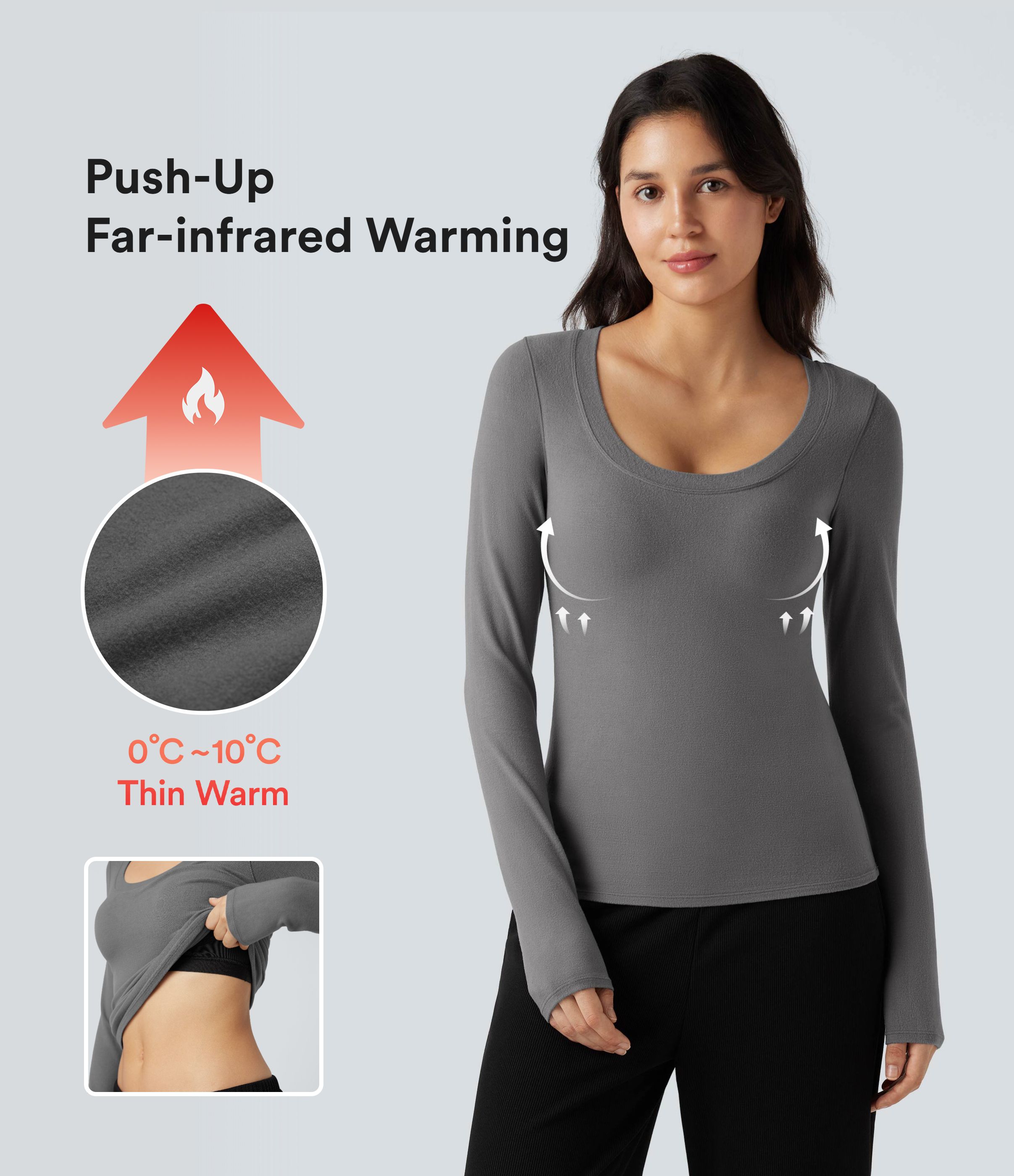 Top casual chaud push-up à col arrondi et manches longues - Bonnet A/B