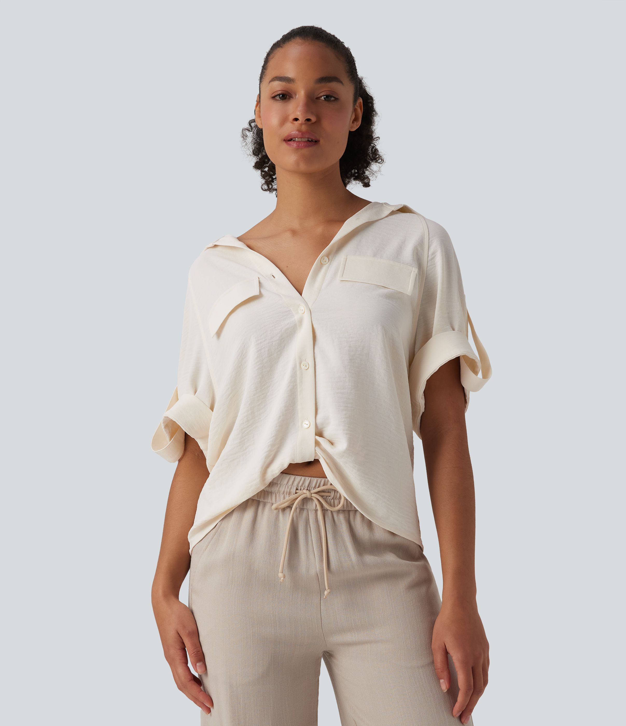 Chemise casual manches courtes aspect lin
