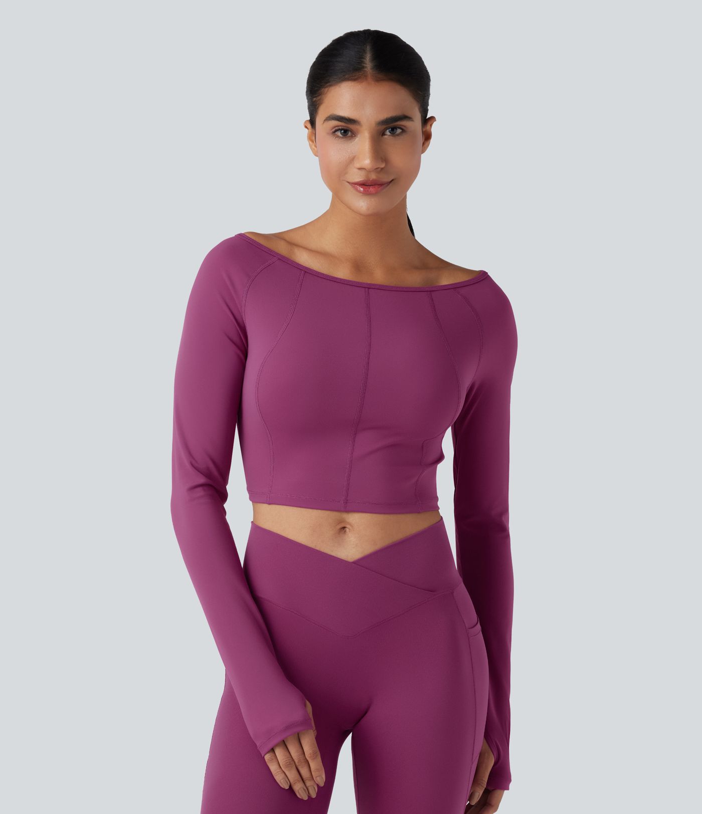 Haut de sport d'entraînement court décolleté bateau à manches longues avec passants pouces SoftlyZero™ Plush