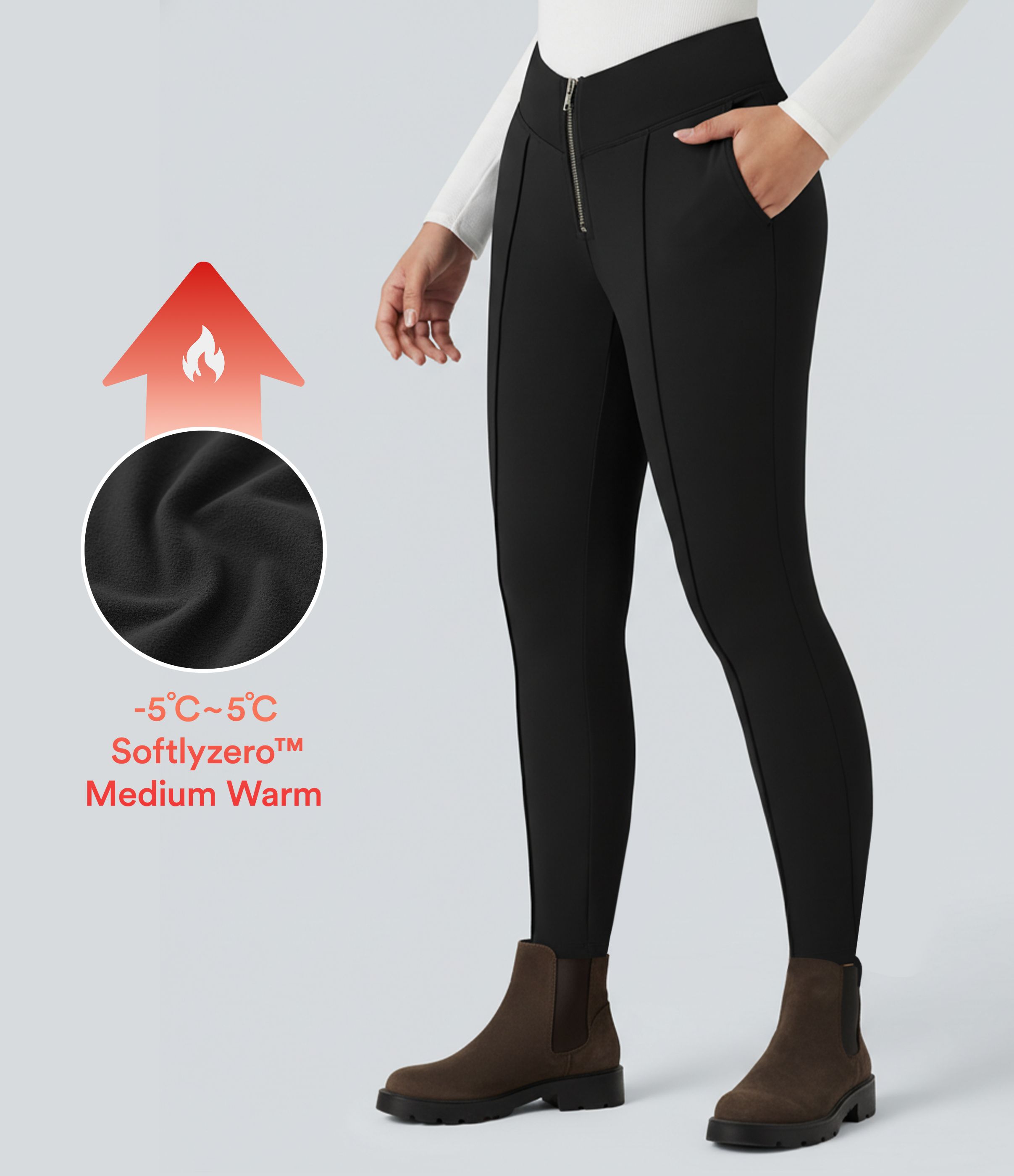Pantalon tailleur thermique SoftlyZero™ Plush taille en V taille haute avec fermeture éclair et poches