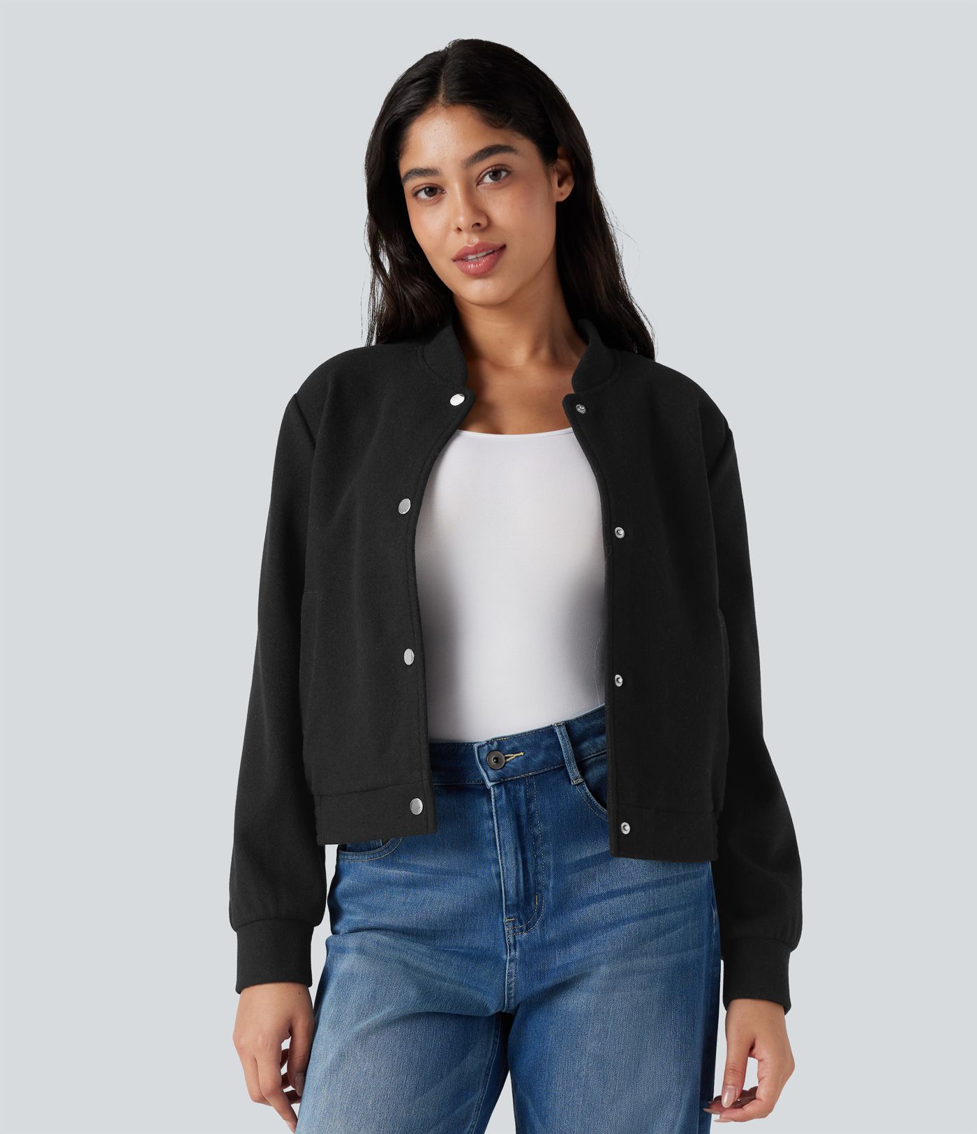 Veste bomber polaire col montant manches longues avec poches