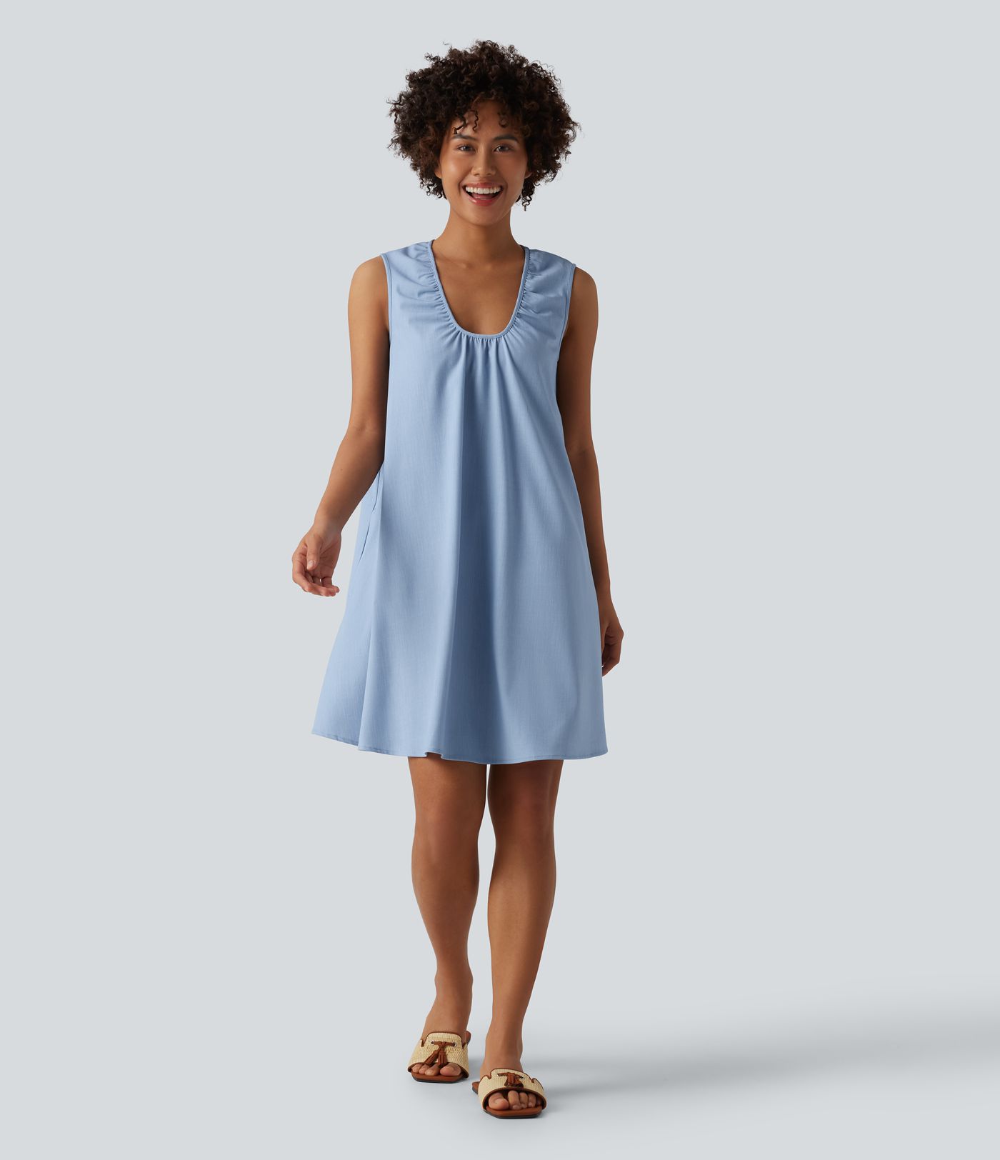 Robe mini resort col U sans manches aspect jean avec poches